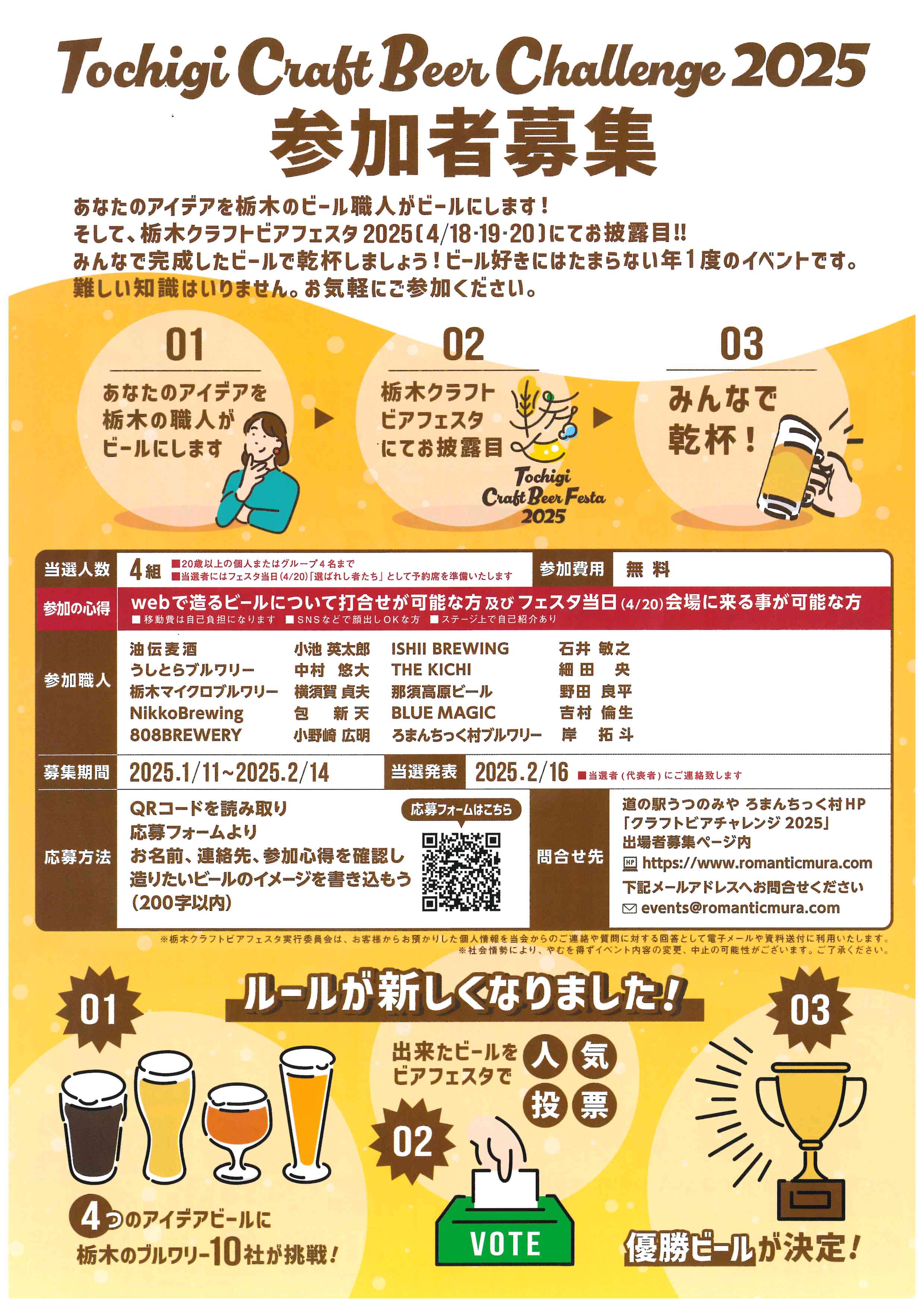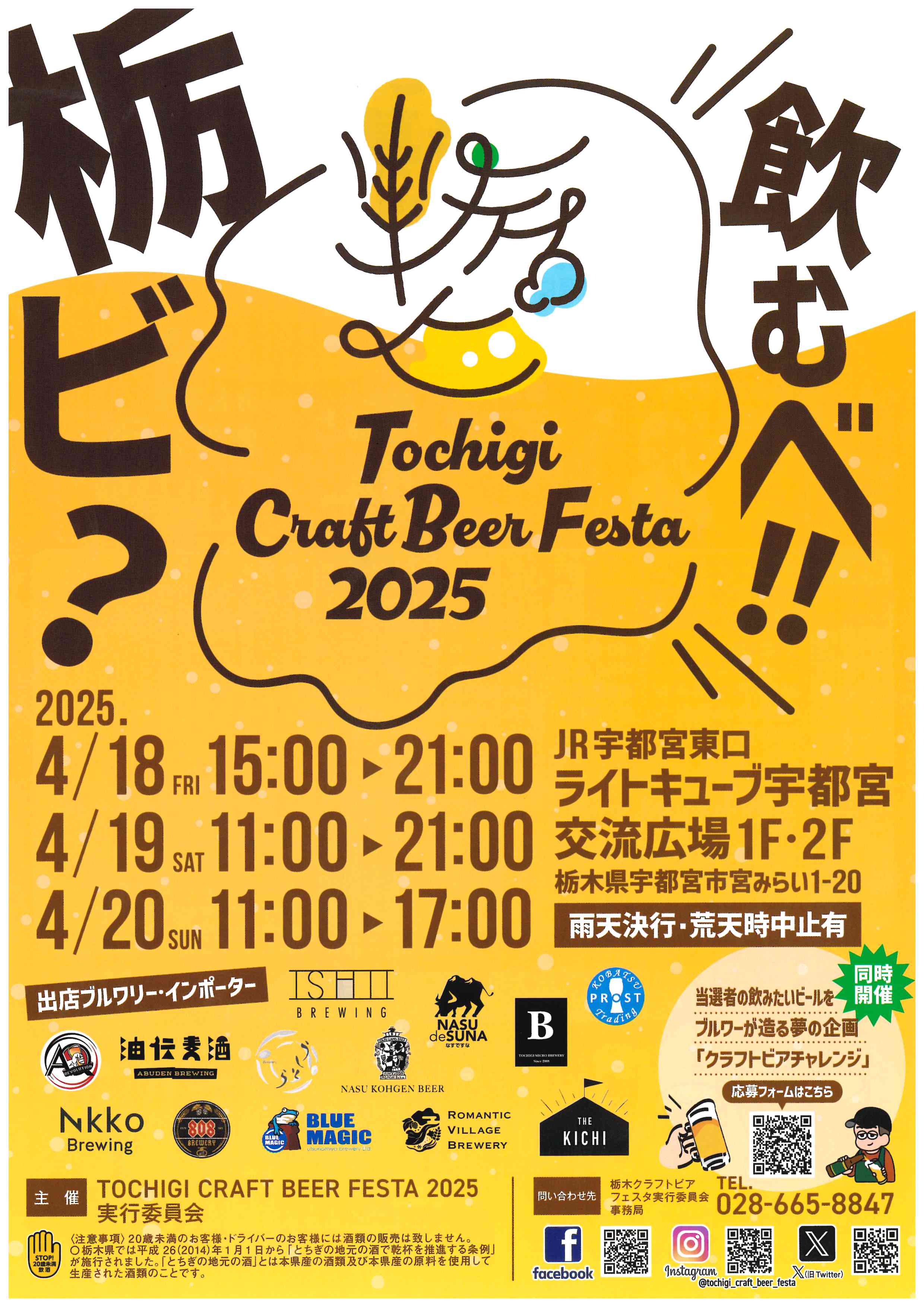 宇都宮を中心とした栃木県内のクラフトビールメーカー約8社が約50種類のクラフトビールを販売するイベントです。クラフトビールを通して農業の活性化や地域活性、中心市街地への誘客を目的としたイベントは、宇都宮や栃木県の食材を使用したビールに合う食事も提供され、ジャズライブも実施されます。また、極力電気を使用しない、ゴミ減量、リユース食器の使用等、節電や環境に配慮したイベント展開をしています。