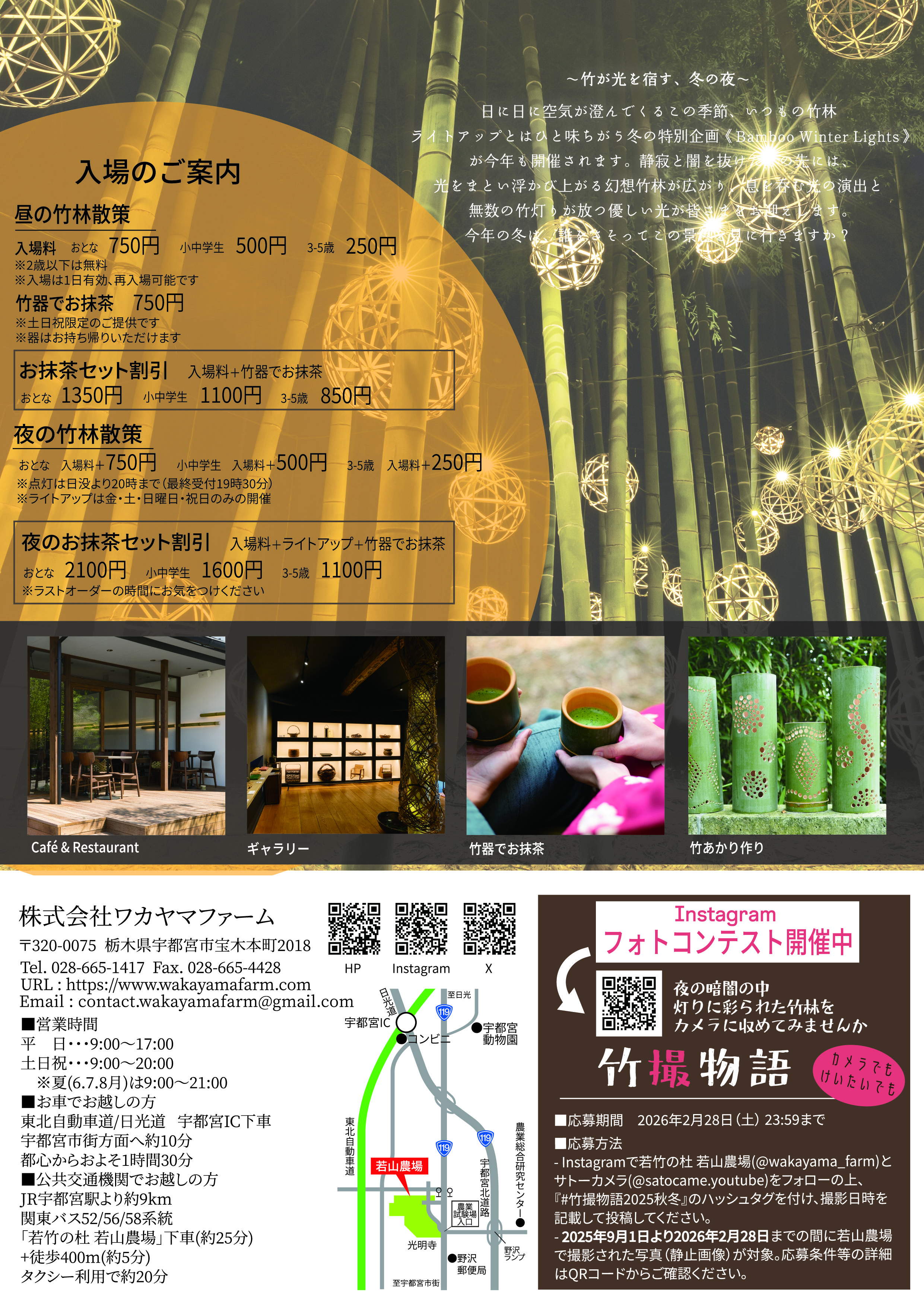 - ・JR宇都宮駅からバスで約30分、「若竹の杜若山農場」下車、徒歩約5分