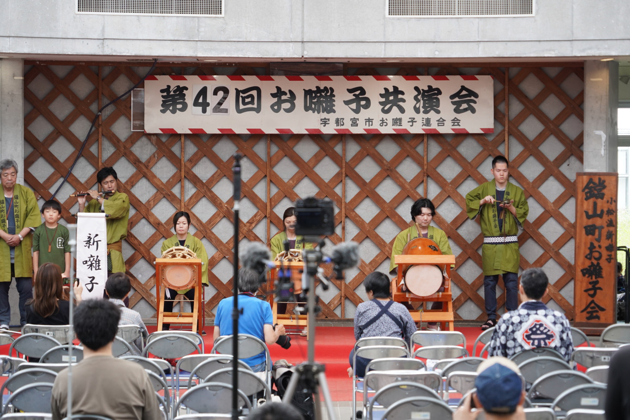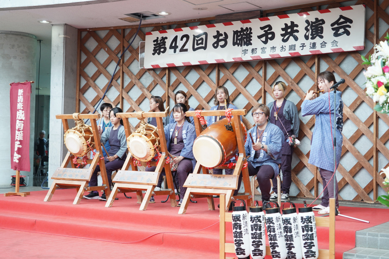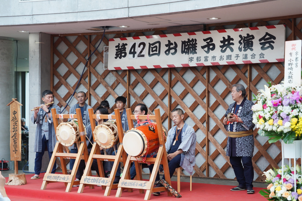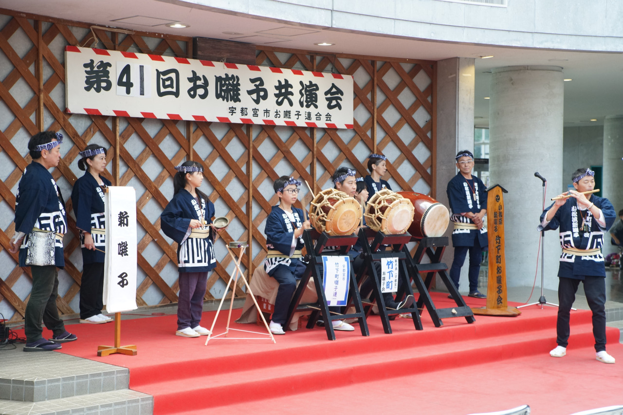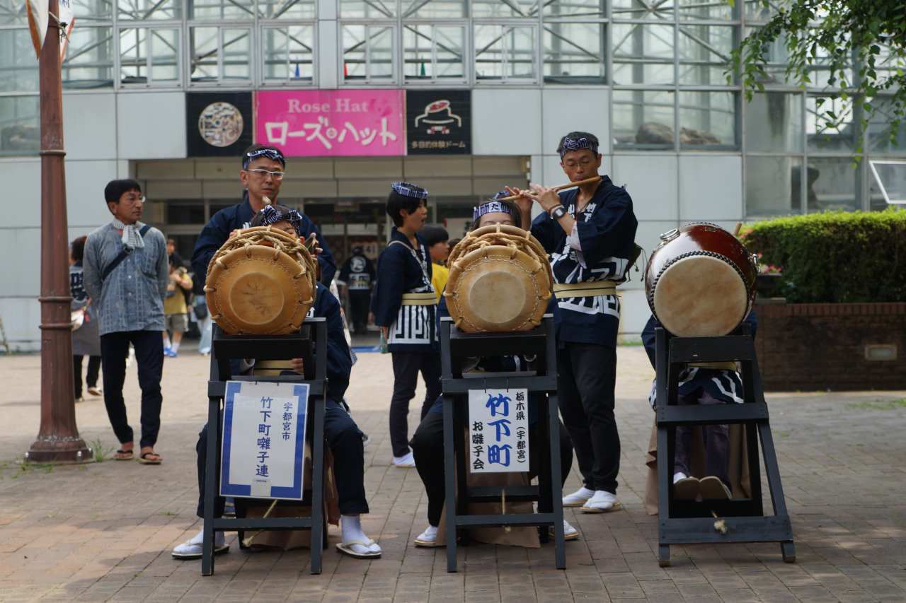 宇都宮市お囃子連合会に所属するお囃子団体の共演会です。一堂に揃うのはふるさと宮まつり以外ではこの日だけ。ローズハット前の広場では、ぶっつけも行われます。各団体の笛の音、鐘の音、太鼓の音の違いを感じてみてはいかがですか。