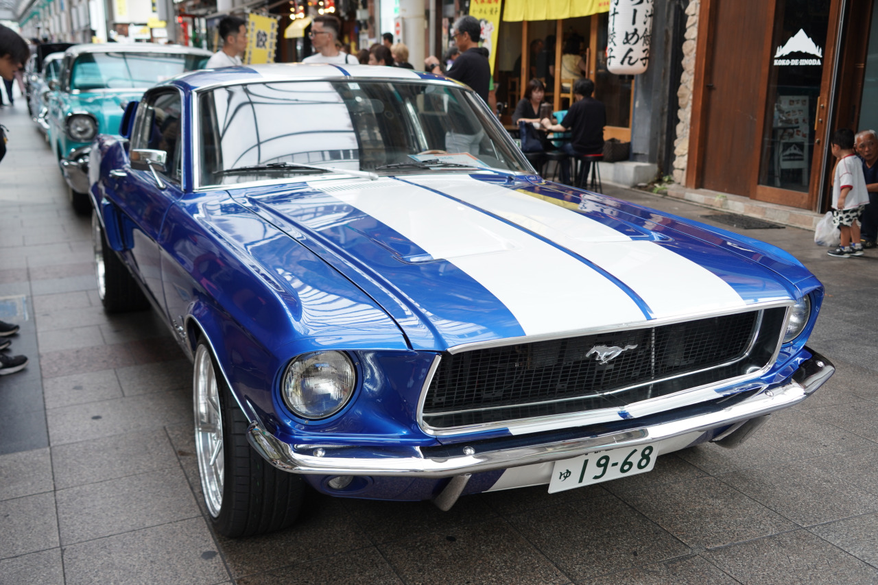 オリオン通り曲師町商業組合の設立50周年を記念して2023年に始まったイベント、オリオン通りにフォードやシボレーなどアメ車のビンテージカーが約30台展示されます。もちろん写真撮影もOK!