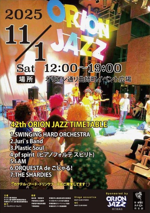 宇都宮餃子祭りやミヤジャズインに合わせて開催される、街なかのジャズイベント。オリオン通り曲師町イベント広場に特設ステージが設けられ、オリオン通りにジャズの音色が溢れます。