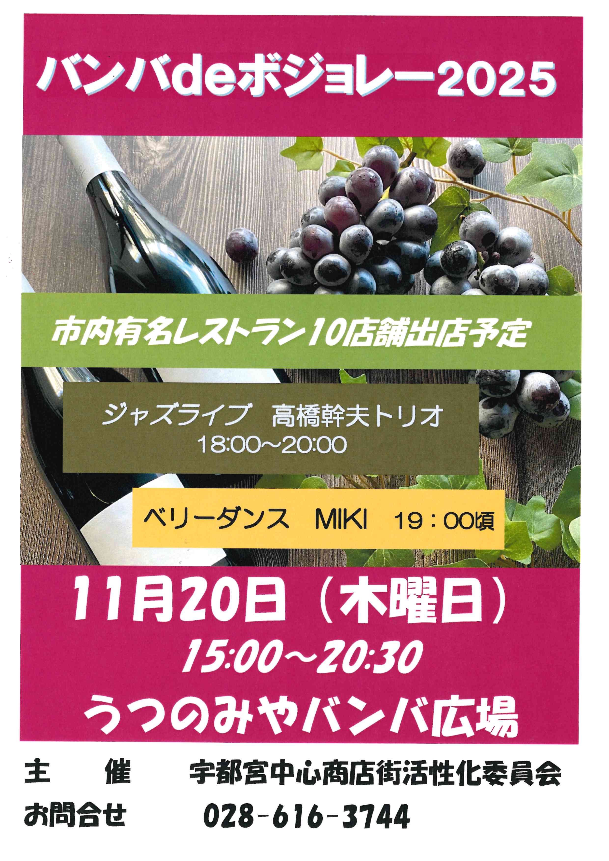 ボジョレー解禁に合わせて、市内有名レストランがバンバ市民広場に10店ほど出店します。