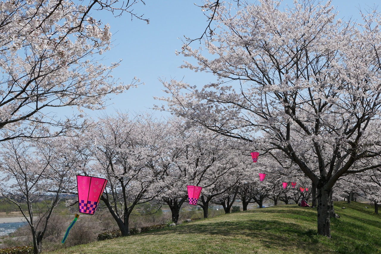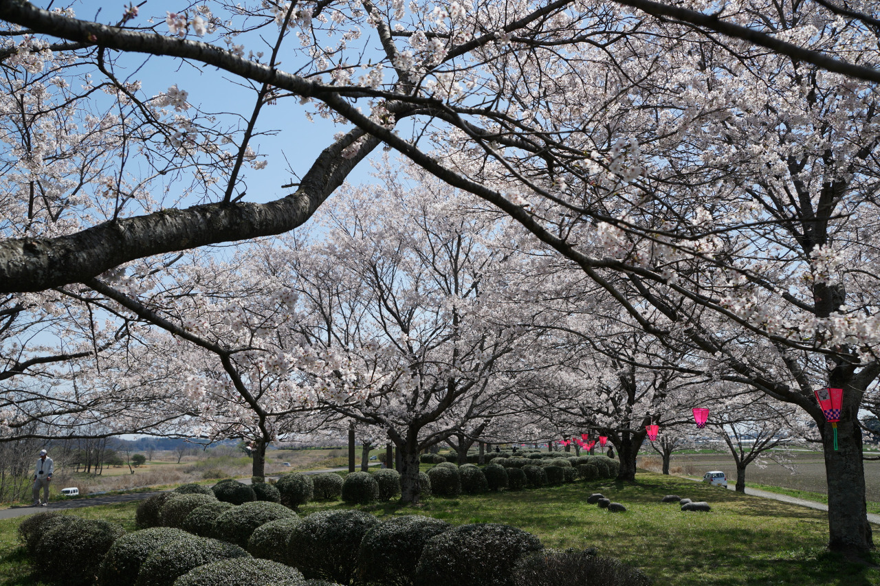 西鬼怒川の堤防沿いに広がる開放感あふれるお花見スポットです。市街地の喧騒から離れて、のびのびとした景色の中で桜を楽しめるのが大きな魅力です。