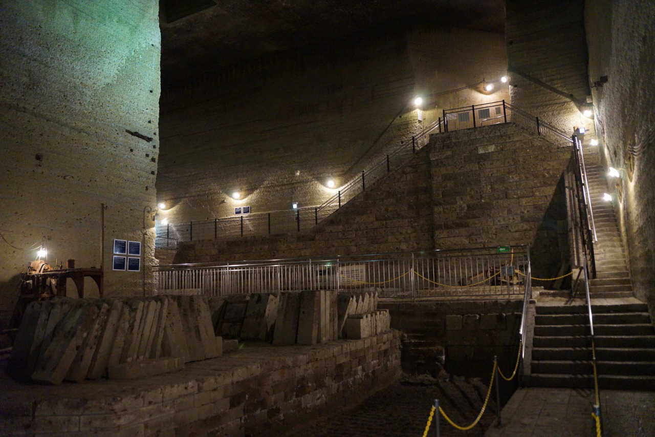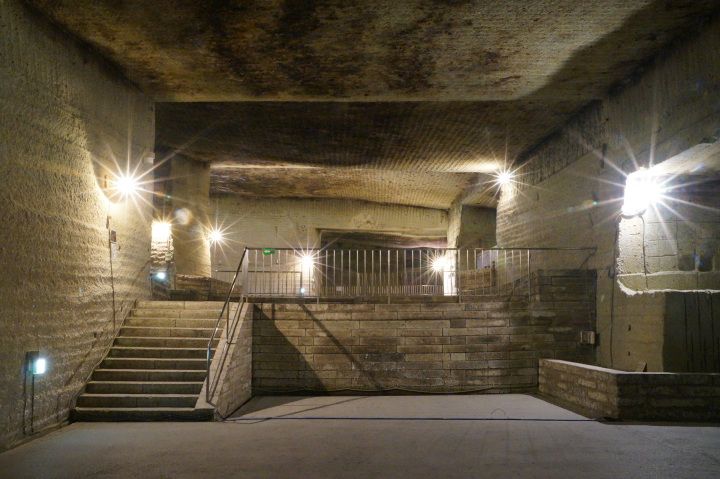 ひんやりとした空気を感じながら階段を下りていくと、目の前に広がる巨大な地下神殿。広さ2万平方メートル、深さ30mにもおよぶ迷宮は、「資料館」という名から想像できない圧倒的なスケール感。手堀り時代のツルハシのあとが残る石肌にそっと触れながら歩いていると、時のたつのを忘れてしまいそうになる、そんな非日常な気分が味わえると話題になっています。