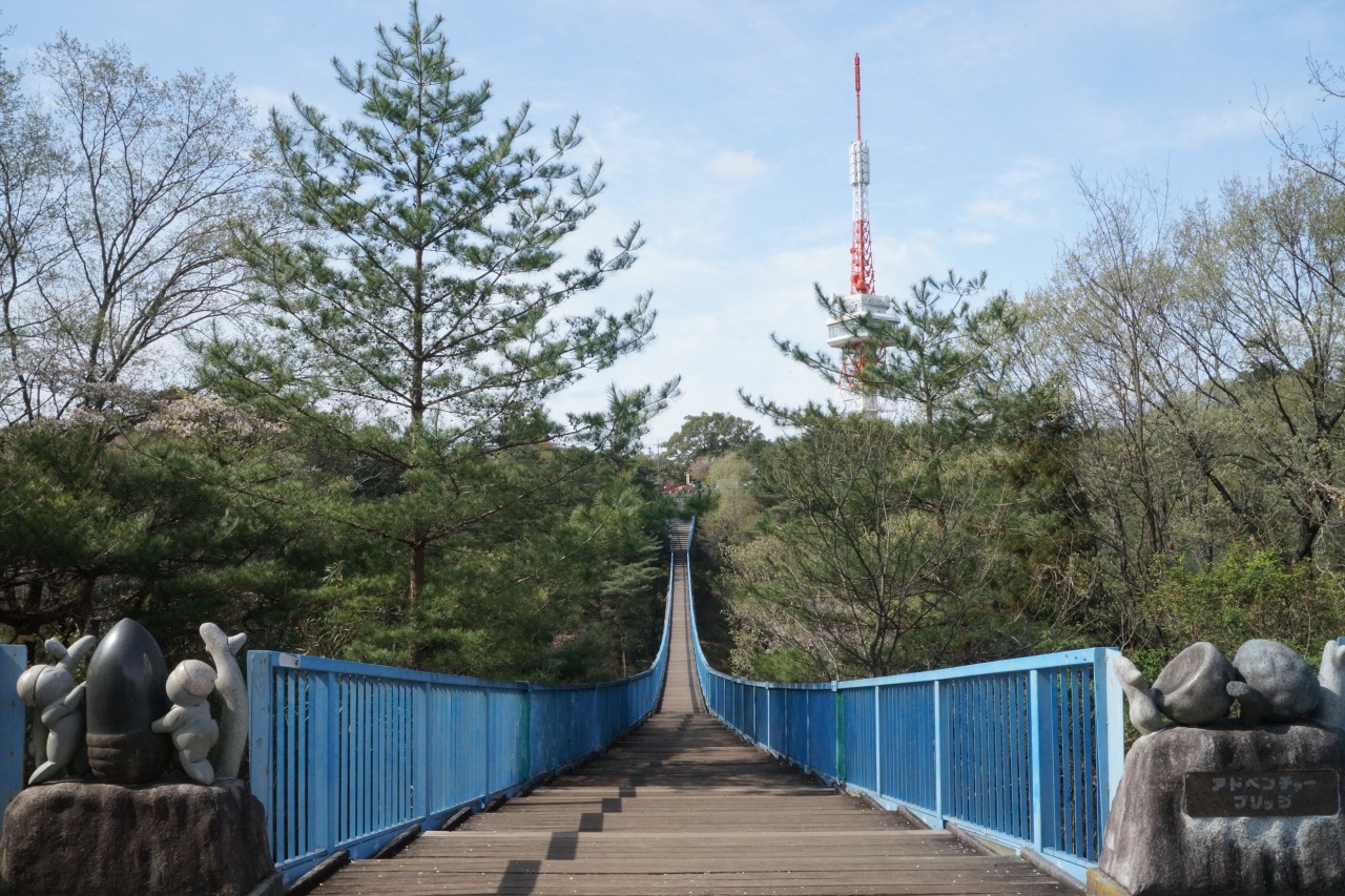 宇都宮市の中心部に位置する、自然な丘陵を活かした公園。便利な立地にありながら、四季折々の自然を楽しめるのが魅力です。市内を一望できる宇都宮タワー、スリル満点の150mの吊り橋、大型遊具や水遊びスポット、タンチョウヅルやクジャクのいる動物舎など、子どもから大人まで楽しめる施設が充実しています。