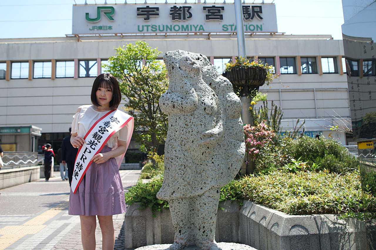 宇都宮餃子のPR のために、テレビ番組の協力のもと、現代彫刻家の西松鉱二氏がデザイン。宇都宮特産の大谷石で制作された、餃子の街宇都宮のシンボル的存在です。当初はJR宇都宮駅東口の歩行者広場に設置されましたが、駅前の再開発に伴い、現在はJR宇都宮駅西口べデストリアンデッキ上に設置されています。駅に降り立ったら、まずはこのビーナスに会いに行ってくださいね。