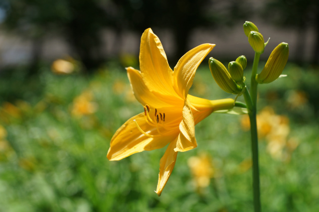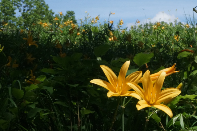 「聖山公園(墓園)」造成にあたり発掘調査を実施したところ、縄文前期の大集落跡を発見しました。当初の墓園計画の一部を変更して、古代の大型建築や竪穴住居を復元しています。「根古谷台遺跡」として現状保存することになり、資料館を整備したのち平成3年に開園しました。約1万株のニッコウキスゲは、5月中旬から下旬にかけ見ごろを迎えます。