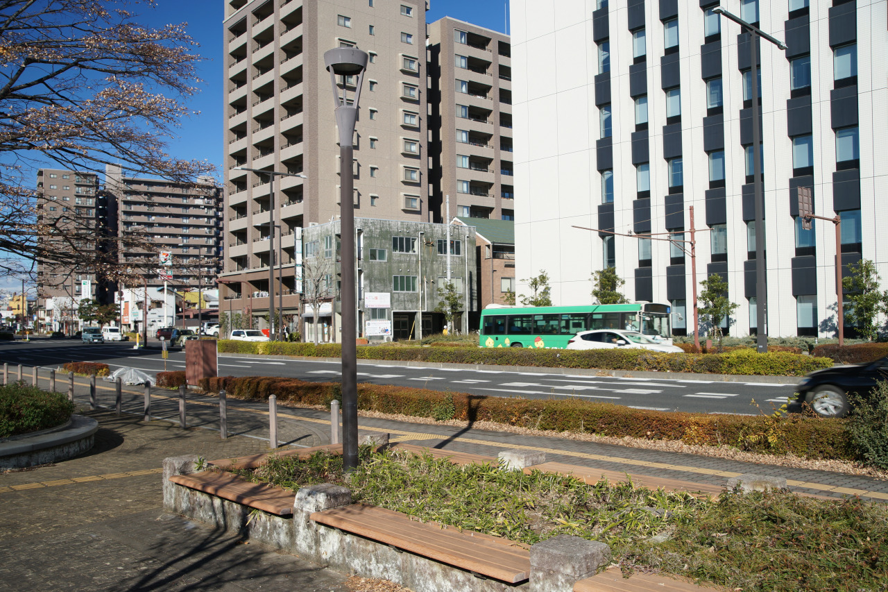 バスや車通りが多い大通りの側にある小さな公園です。こじんまりとしていますが、整備されており、オープニングをはじめとした撮影にも活用できます。