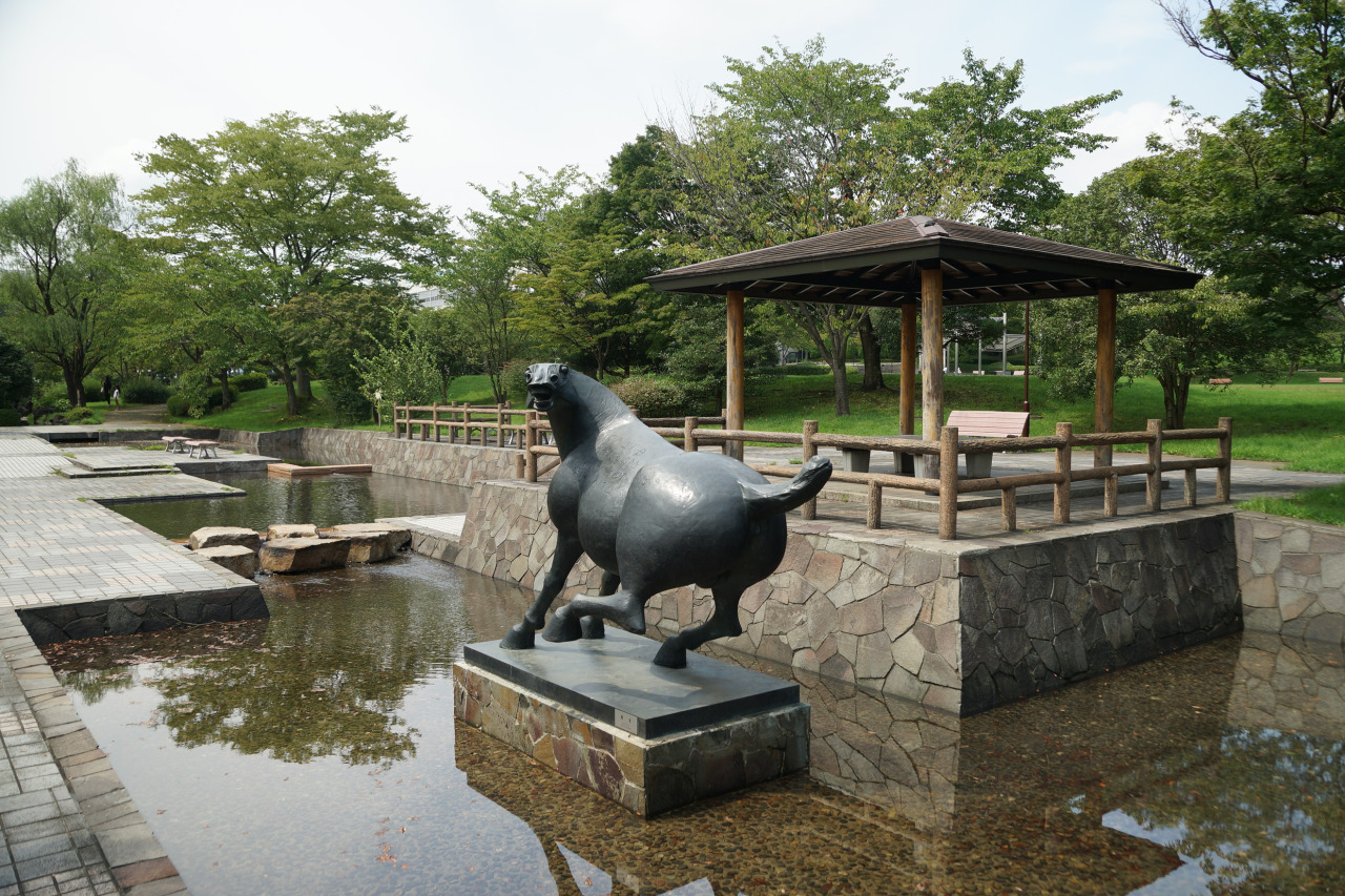 特徴的なオブジェがある公園です。特徴的なオブジェは冒頭のオープニング部分などで活用でき、その他の公園部分も撮影に利用できます。
