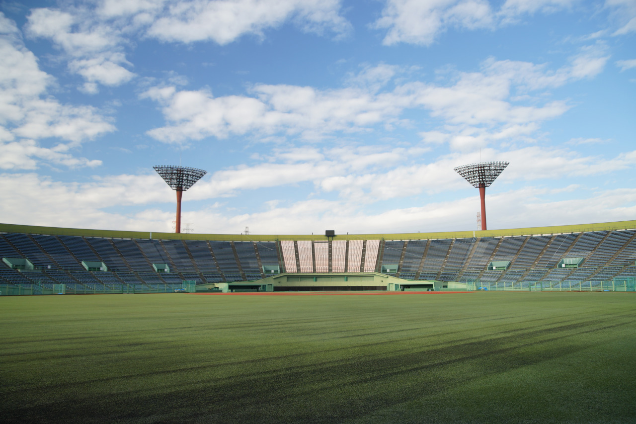 プロ野球も開催される野球場、体育館がある公園です。イベントが開催される芝生広場もあります。