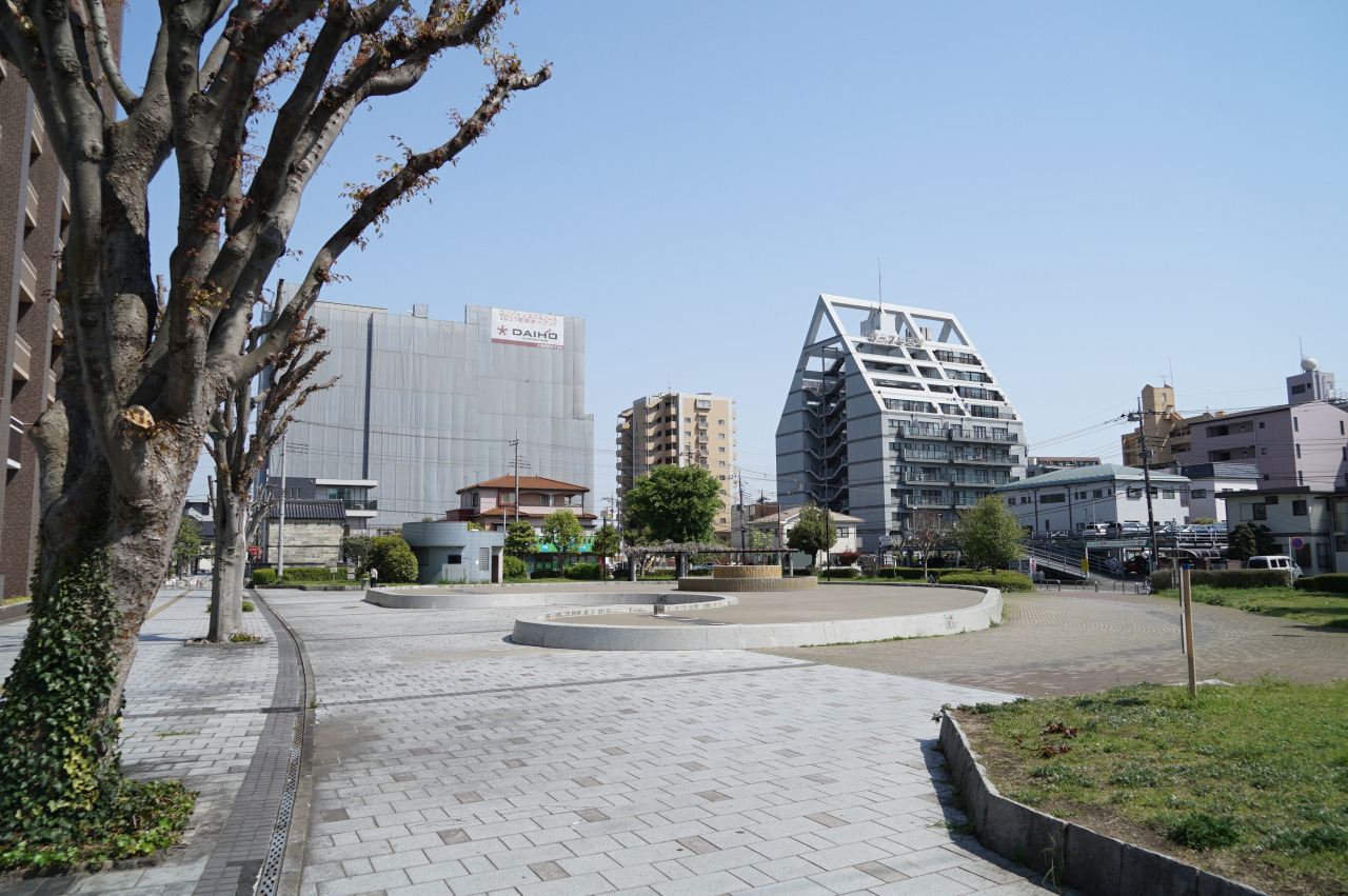 特徴的な噴水がある公園です。色々な撮影に活用出来ます。