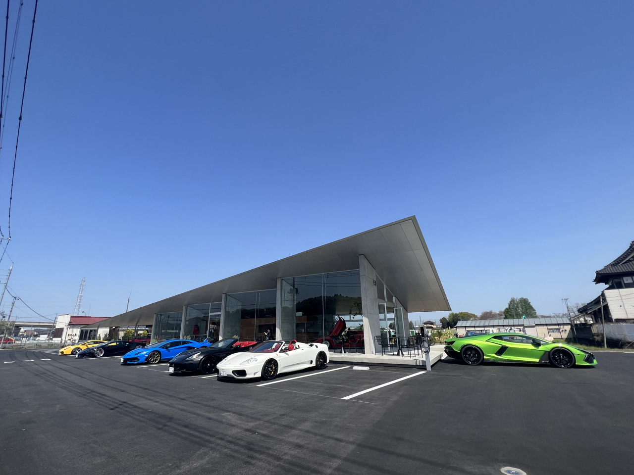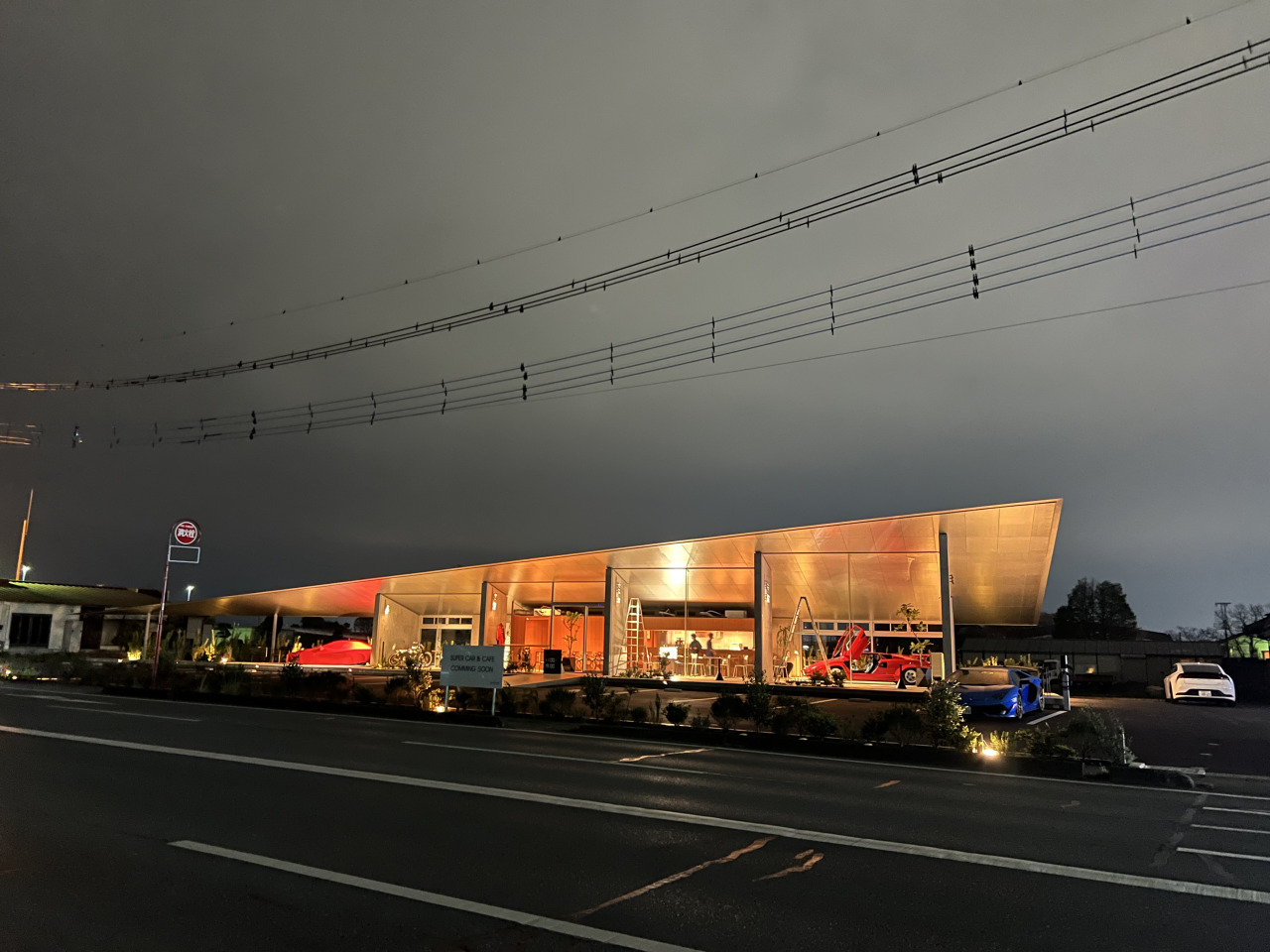 若手デザイナーがデザインしたシャープな建物(RC)とおしゃれな店内。 中にはランボルギーニ・カウンタックやフェラーリ・テスタロッサなどが展示されており、 イベントなども開催。様々な使い方ができる。