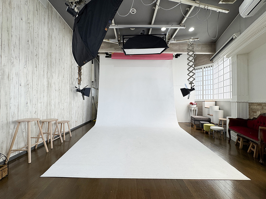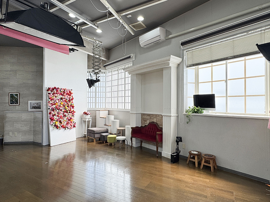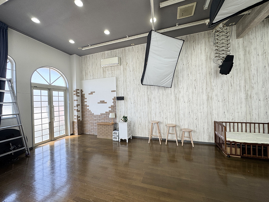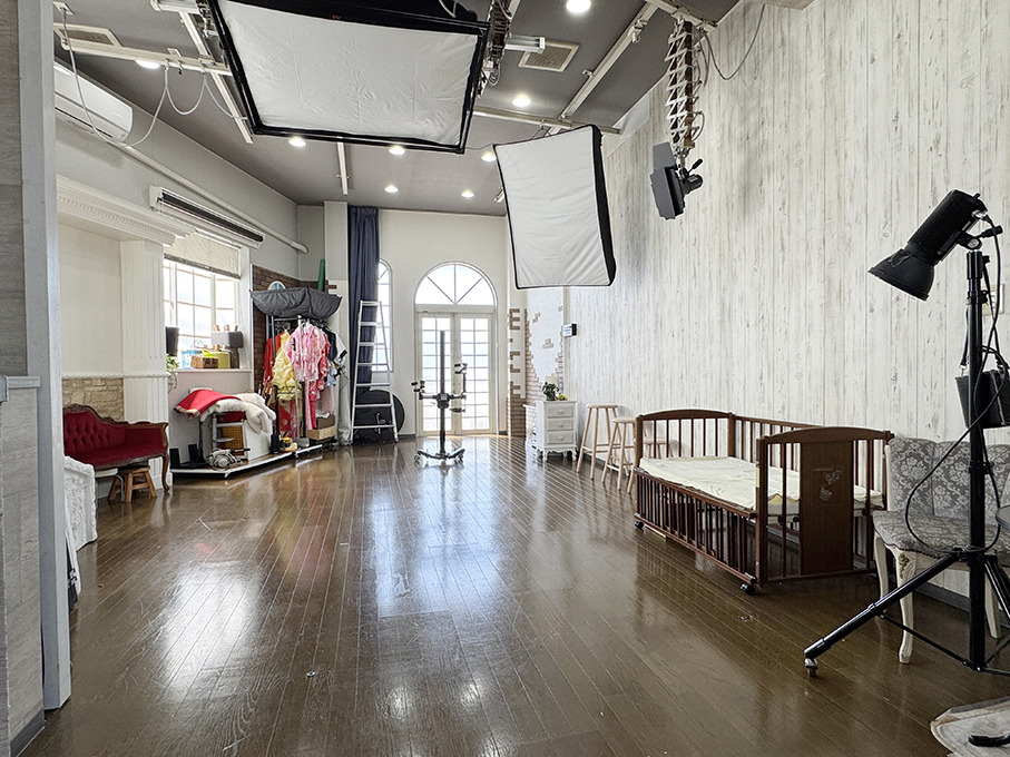 撮影シーン、喫茶シーン、打ち合わせシーン、子供が遊ぶシーンなどが撮影できる写真館・写真スタジオ