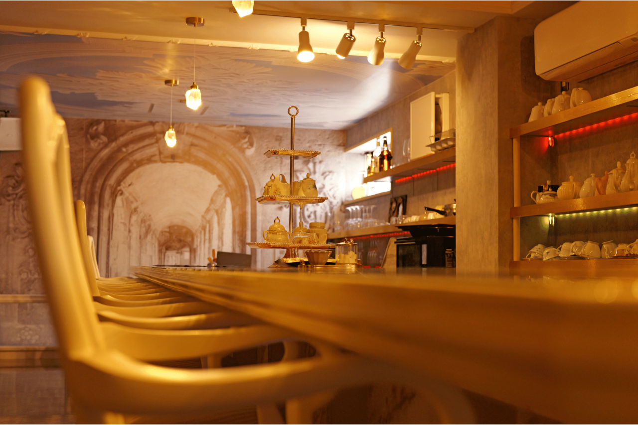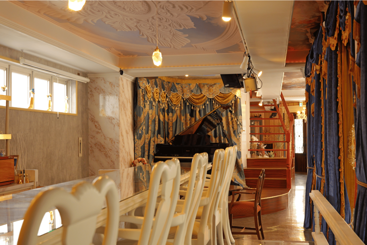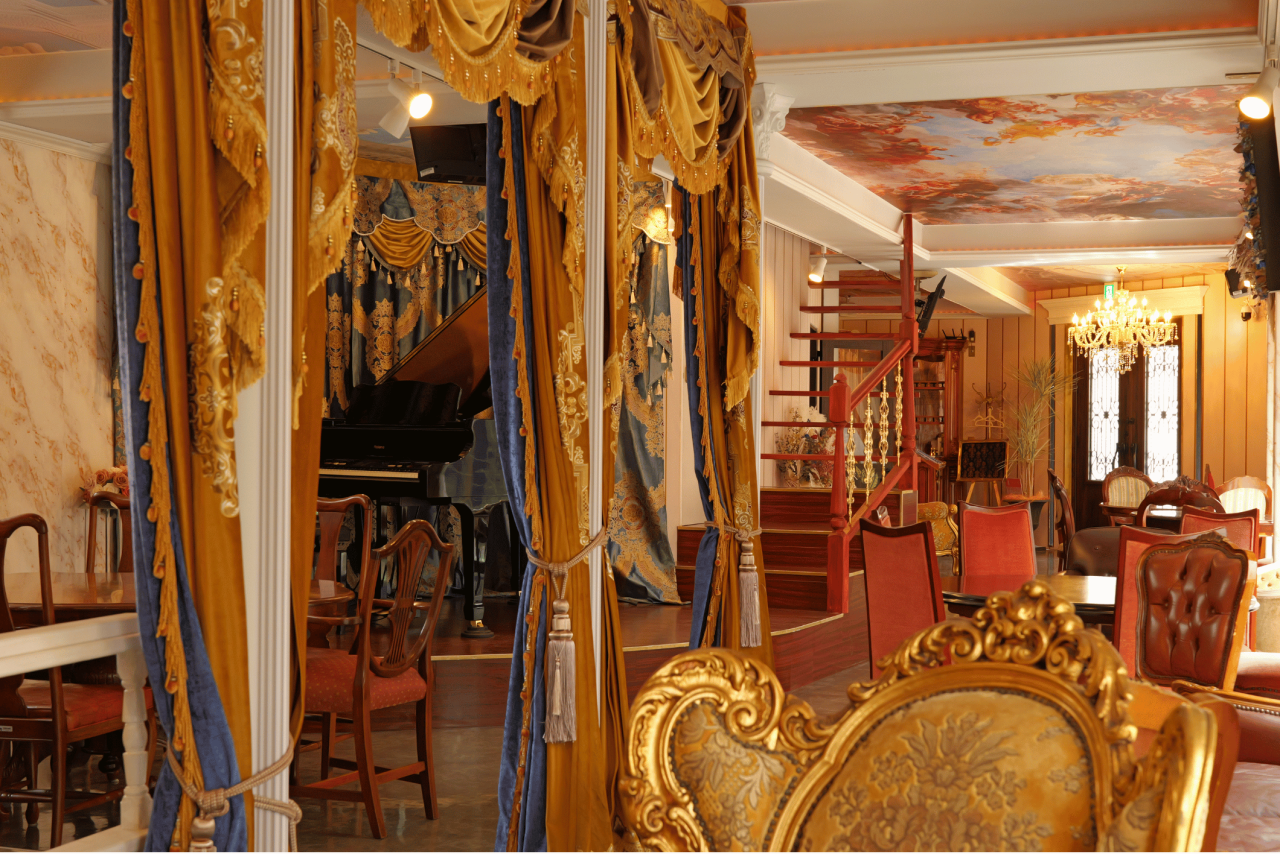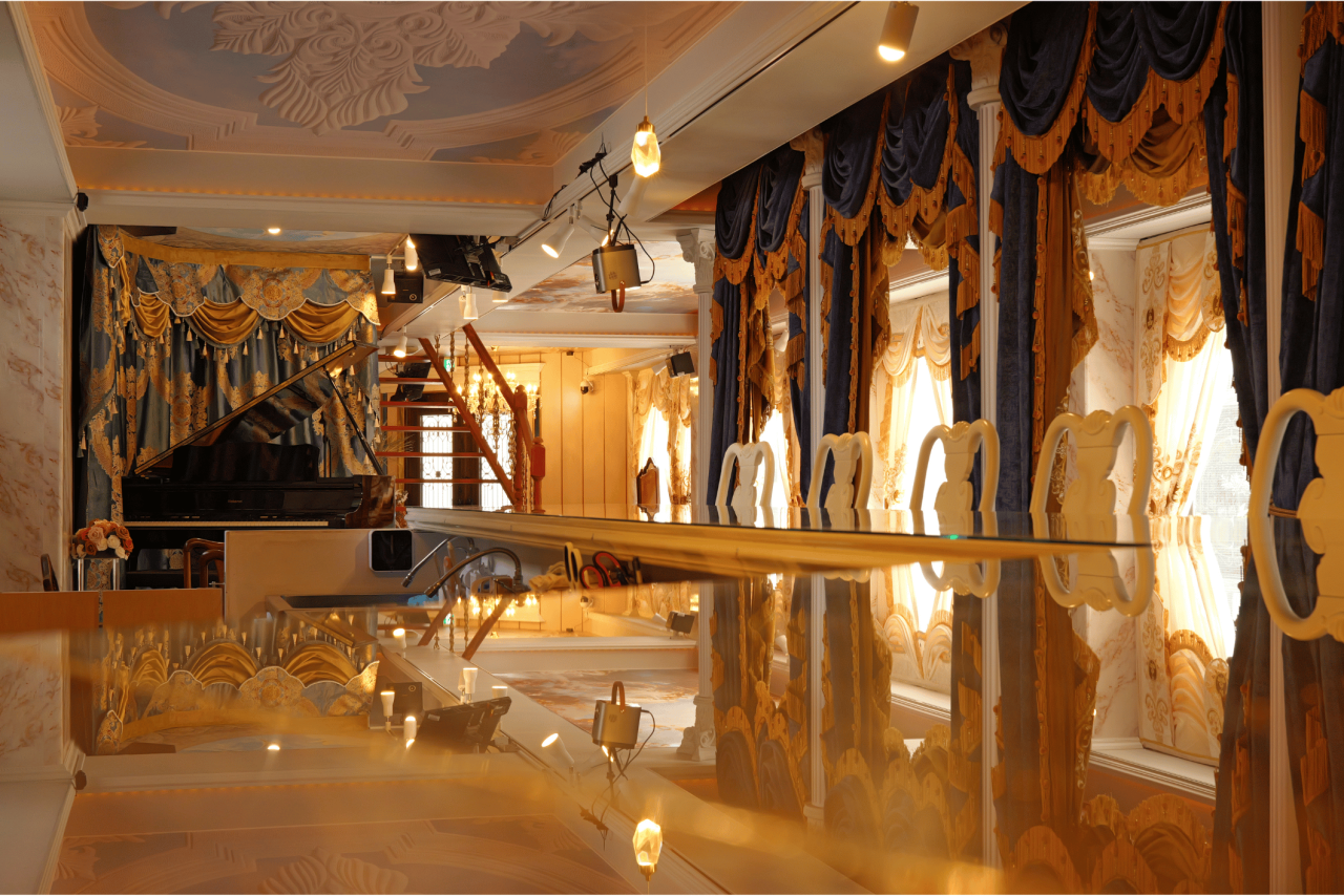 光輝くバーカウンターやステージがあり、まるで宮殿にいるかのような特別感を体験可能。