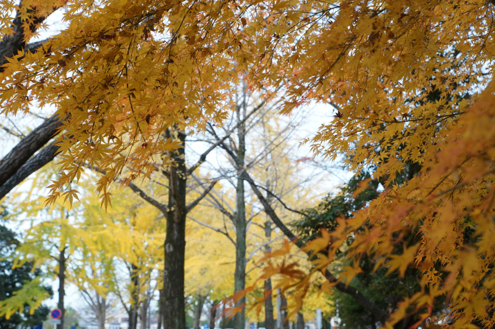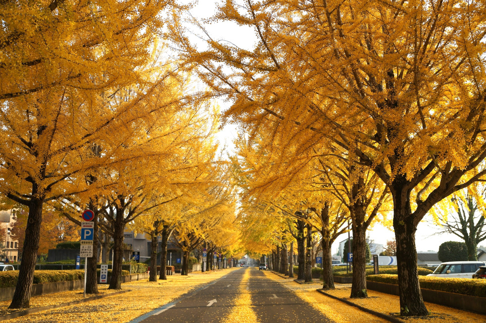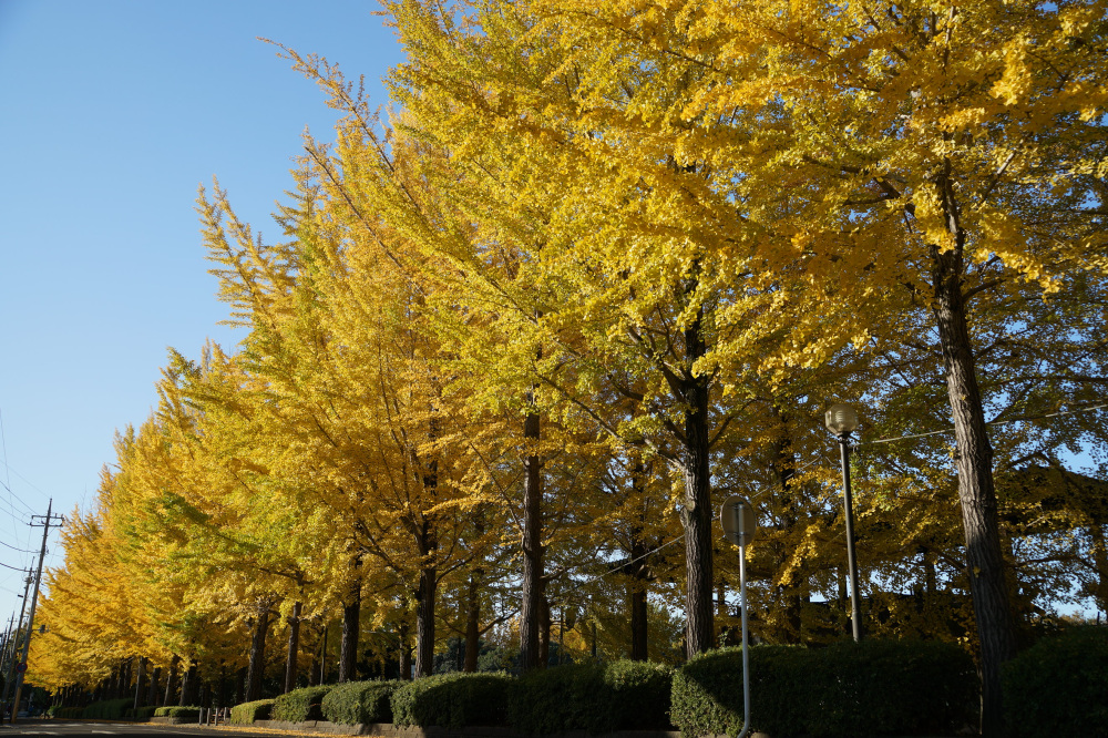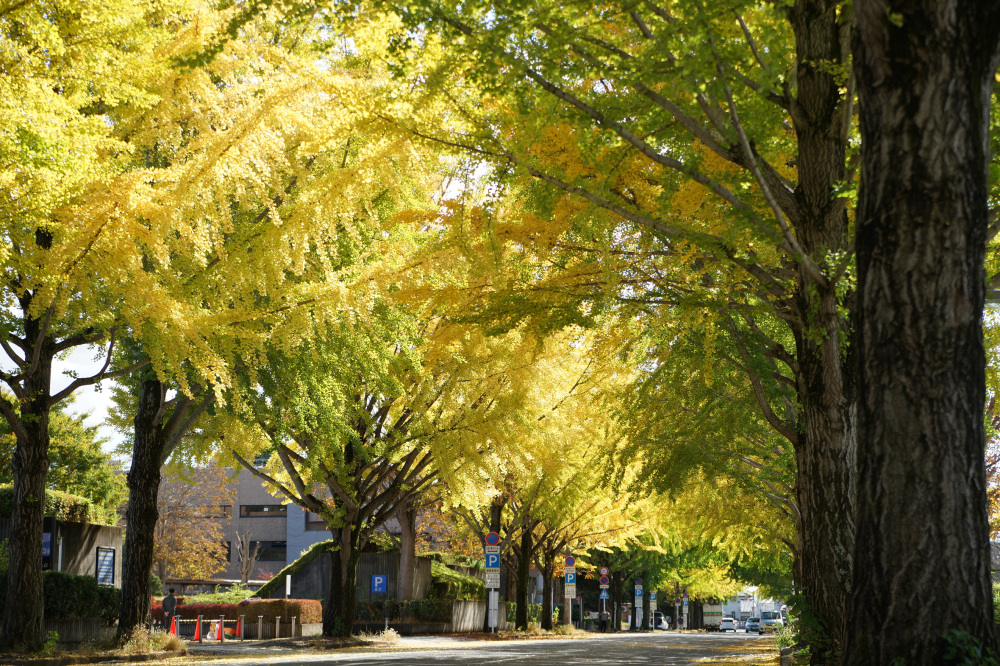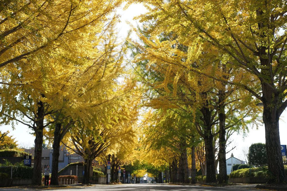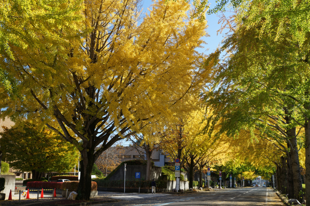 いちょう並木は約400メートル続き、道路沿いに約50本植えられています。「うつのみや百景」にも選ばれ、例年11月に入ると徐々に黄色に染まっていきます。