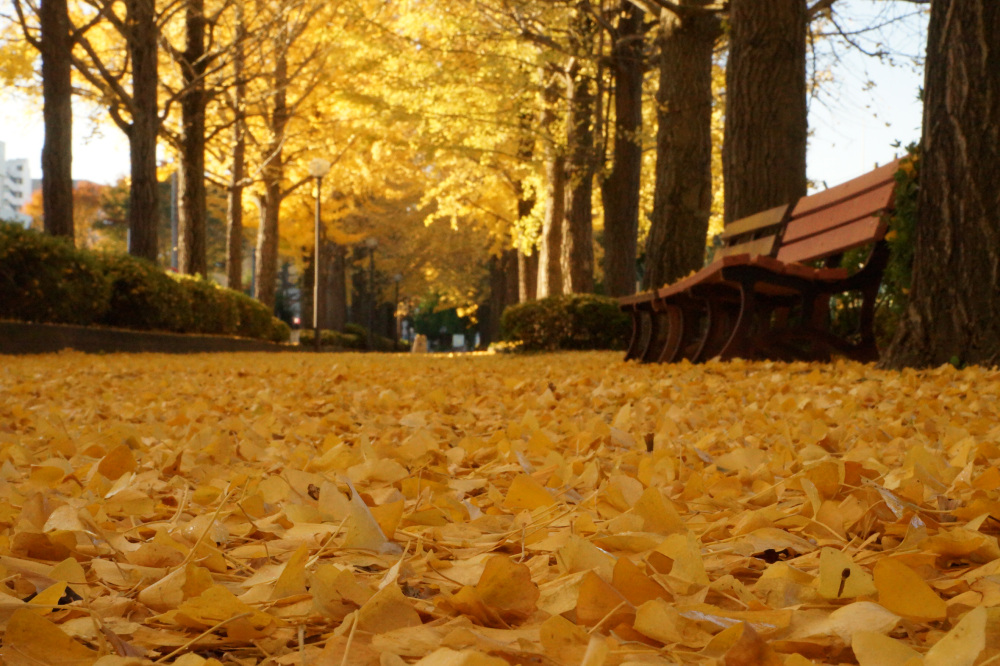 宇都宮駅東公園には、約60本のいちょうが植えられており、紅葉の時期には約170メートル続く黄色いトンネルの中を散歩できます。園内ではモミジの紅葉も見ることもできます。いちょう並木の紅葉が進むと、並木道の歩道も黄色く輝く絨毯のようになり、絶好のフォトスポットになります。例年、11月上旬から中旬頃にかけてが、紅葉の見頃の時期となり、遊具など遊び場も充実しているので、カップルだけでなくお子様連れにもおススメです。