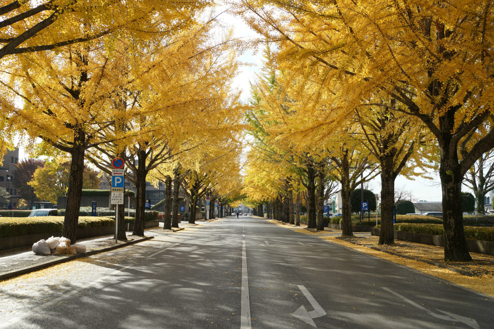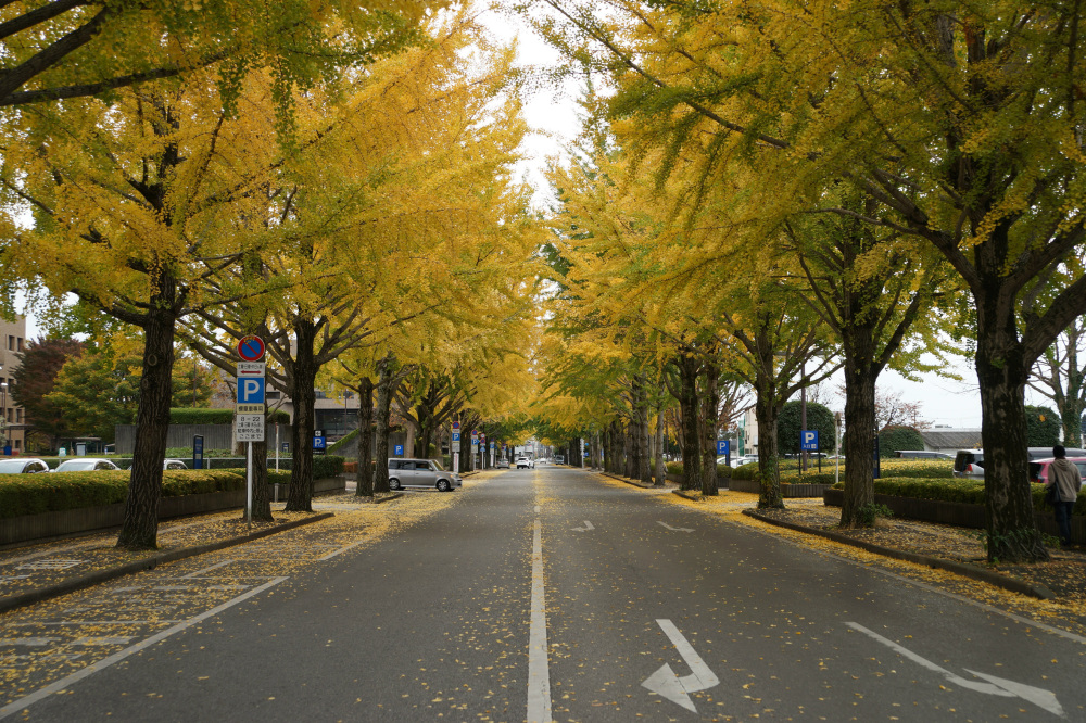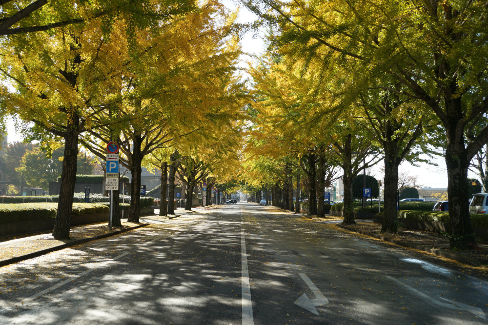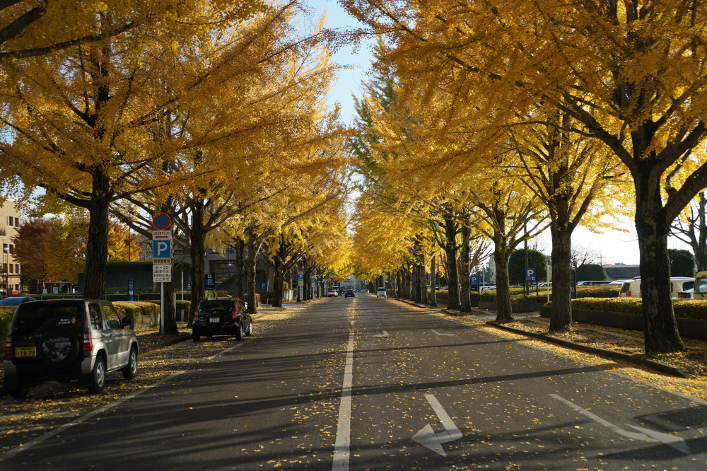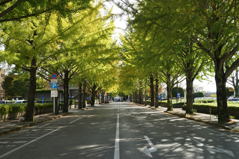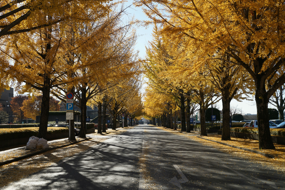 いちょう並木は約400メートル続き、道路沿いに約50本植えられています。「うつのみや百景」にも選ばれ、例年11月に入ると徐々に黄色に染まっていきます。