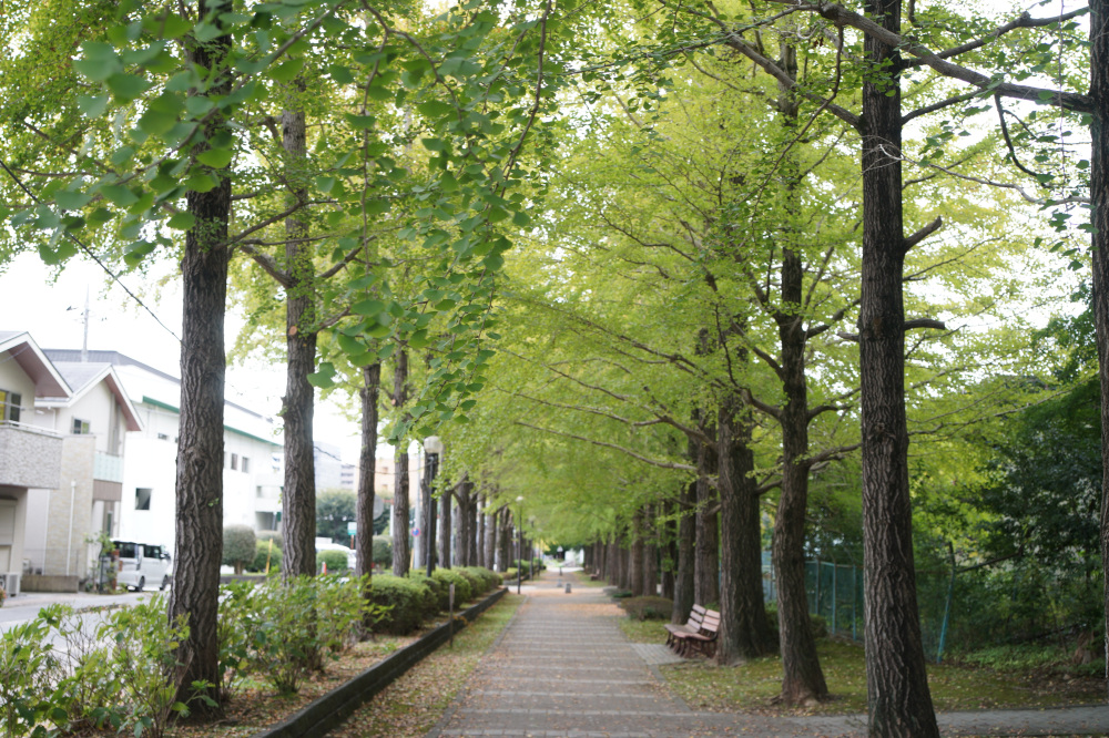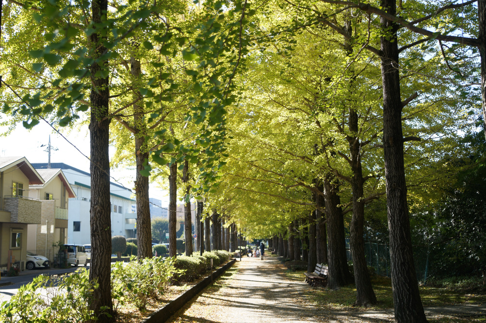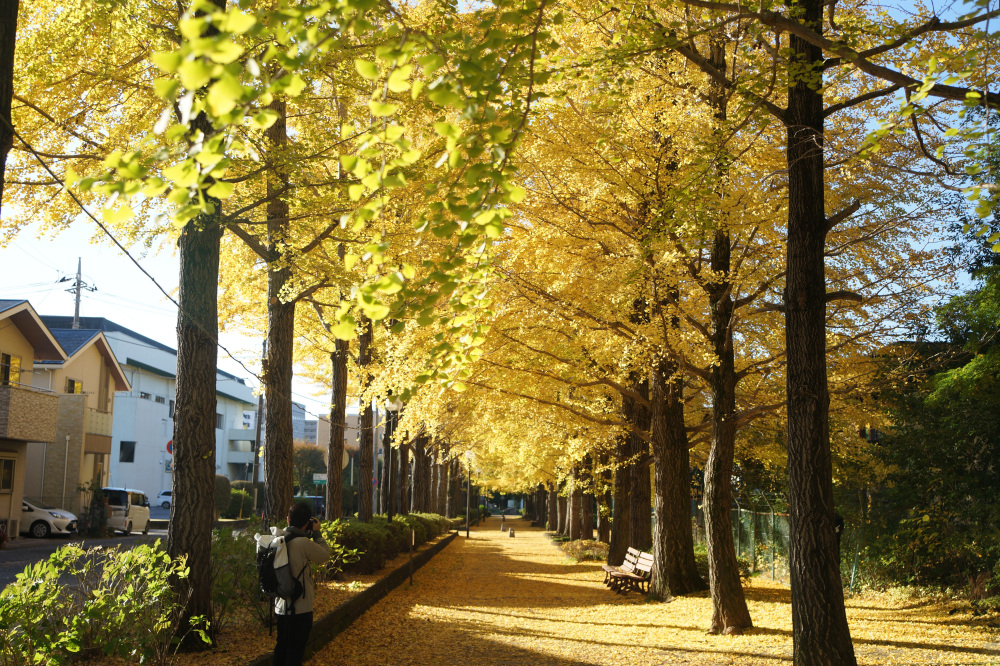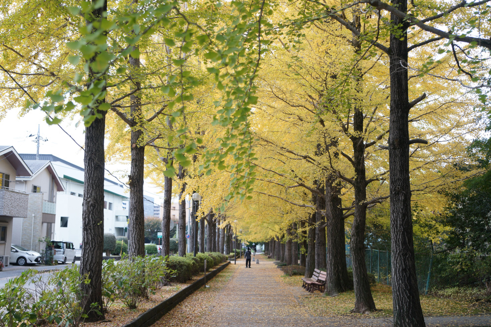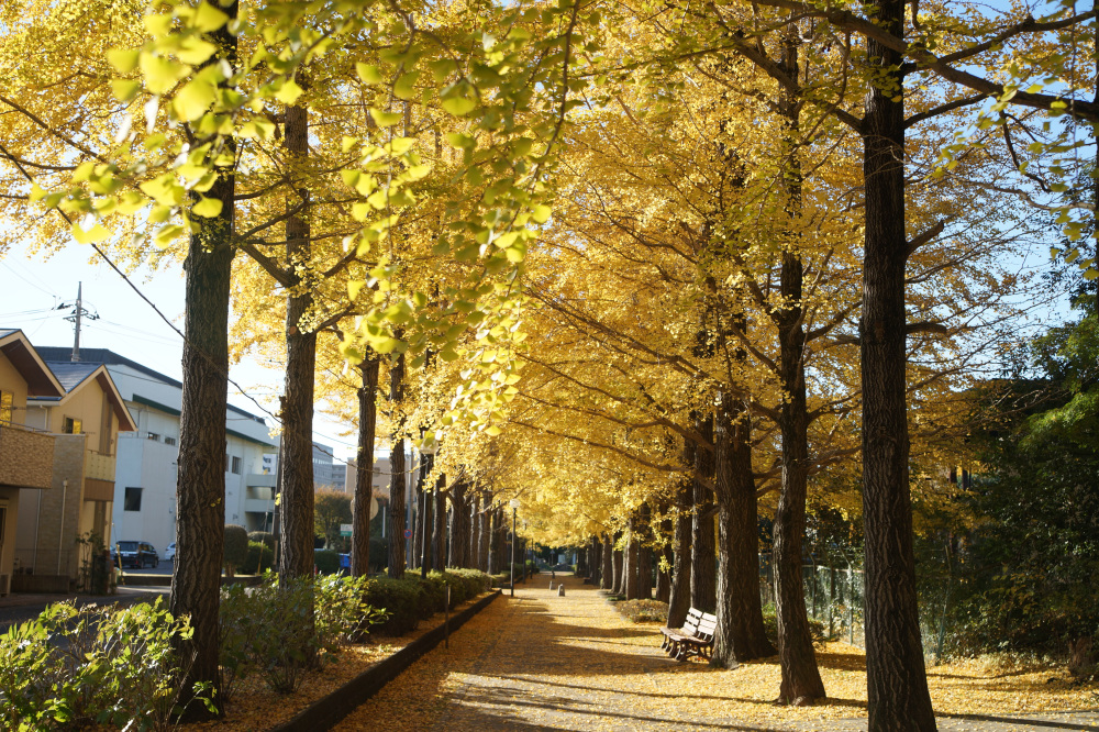 宇都宮駅東公園には、約60本のイチョウが植えられており、紅葉の時期には約170メートル続く黄色いトンネルの中を散歩できます。園内ではモミジの紅葉も見ることもできます。見どころイチョウ並木の紅葉が進むと、並木道の歩道も黄色く輝く絨毯のようになり、絶好のフォトスポットになる。例年、11月上旬から中旬頃にかけてが、紅葉の見頃の時期となり、遊具など遊び場も充実しているので、カップルだけでなくお子様連れにもおススメです。