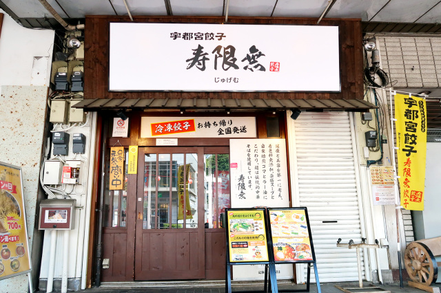 昭和36年創業。先代から変わらぬ味を提供する餃子専門店。皮は自家製、餡には国産野菜と栃木県産の豚肉を使用。野菜のシャキシャキ感を残しつつ、お肉たっぷり、餡のスープには隠し味に粉末ホタテとオイスターソースを使った、味わいのバランスの良いジューシーな餃子です。