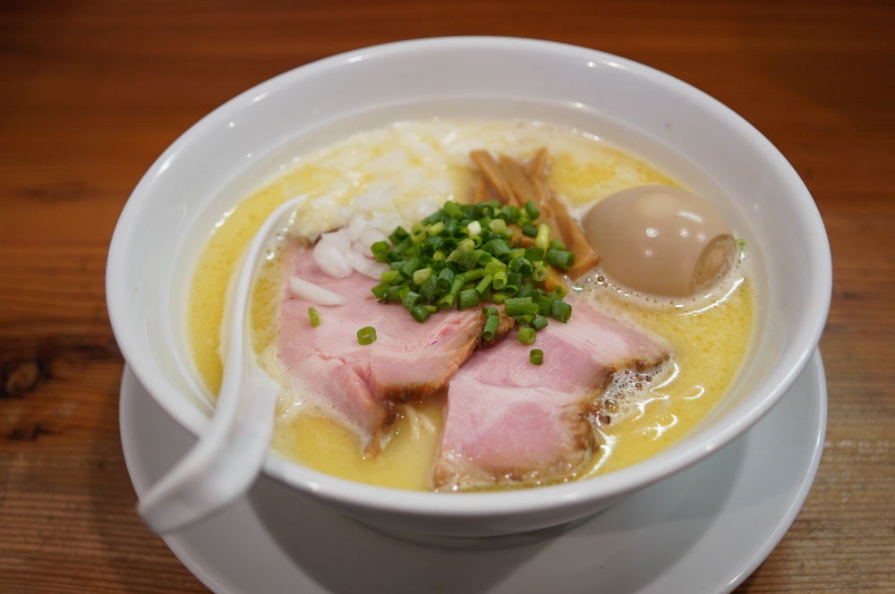 絶品鶏スープをとことん追求。8時間以上丁寧に鶏を炊き上げた、ポタージュのような濃厚スープに、ストレート細麺がよく絡みます。味変は途中で柚子酢をひと回しかけて。サイドメニューも豊富なので、ちょい飲みもできます。オリオン通りに近く、女性ひとりでも入りやすいお洒落な外観が目印です。