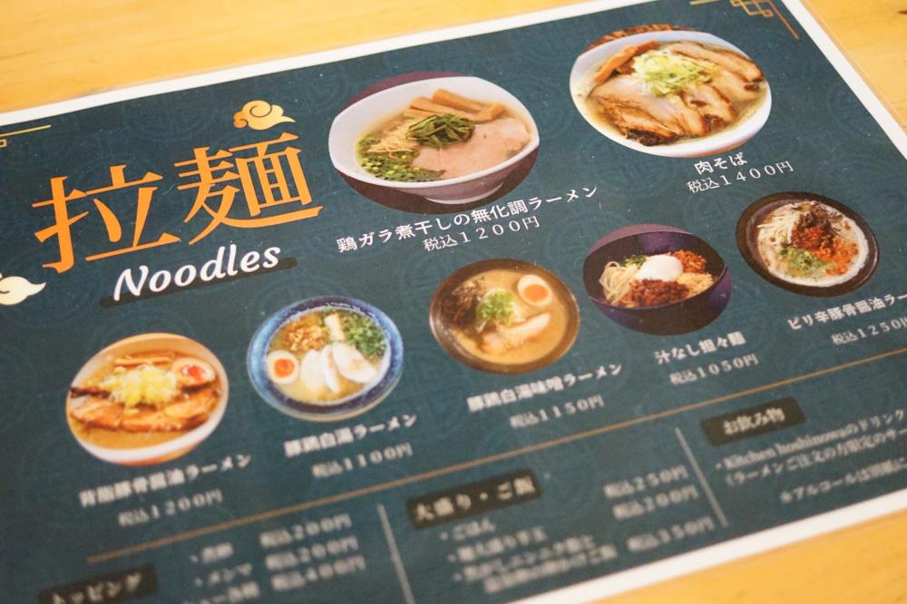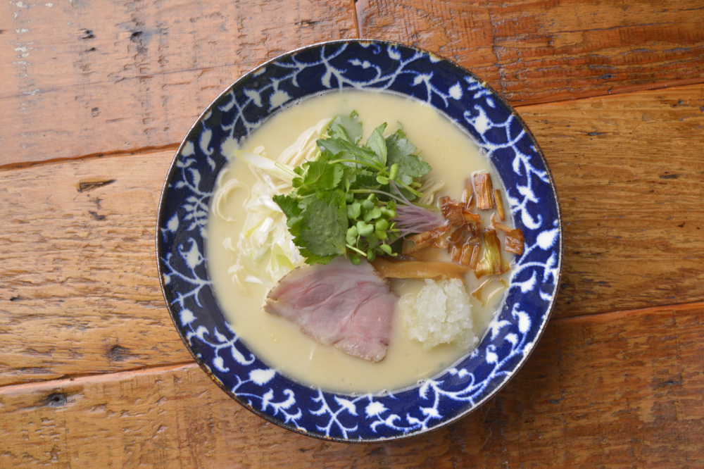 キッチンカー営業からスタートして話題となり、現在は店舗での販売も行っています。広々としたおしゃれな店内は、カフェも併設。鶏ガラ煮干しの無化調ラーメンなど、5~6種類のラーメンを提供。材料にこだわり、丁寧に作られたラーメンがいただけます。