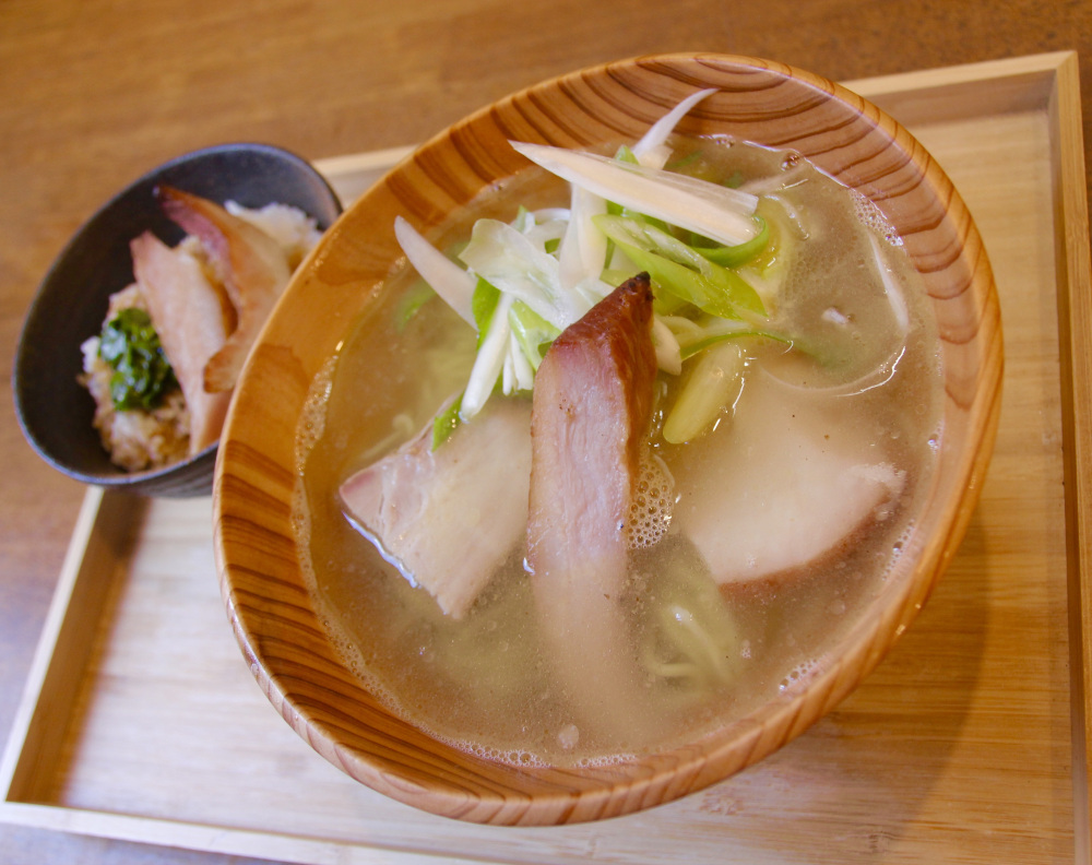 「鯛のどぐろらーめん」は、鯛とのどぐろの香り溢れるブレンドスープに、ロース焼豚と那須の白美人ねぎ入り。国産の天然鯛とのどぐろの一夜干しを贅沢に使った深みのあるスープは、くせになる美味しさです。時期によっては、栃木産の鮎を出汁にしたラーメンも期日限定で提供しています。