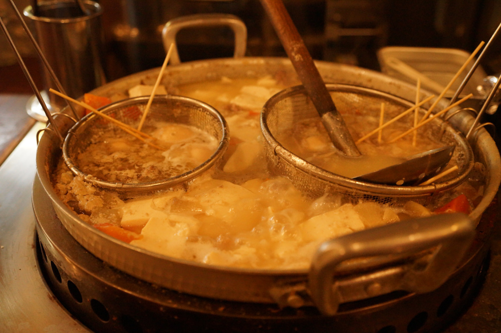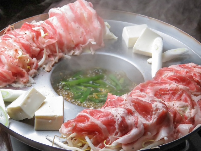 釜川沿いに佇む大人の隠れ家。看板メニューのオイルしゃぶしゃぶは、地元産の「やしおポーク」をユニークな形の鍋に注がれたオイルにくぐらせ、さっと旨みを閉じ込めるのがコツ。初めてでもスタッフが丁寧に食べ方を説明してくれます。シメには玉子を絡ませた麺を投入。新鮮な大山鶏を高級備長炭で焼き上げた焼鳥、鶏レバーなどもおすすめです。