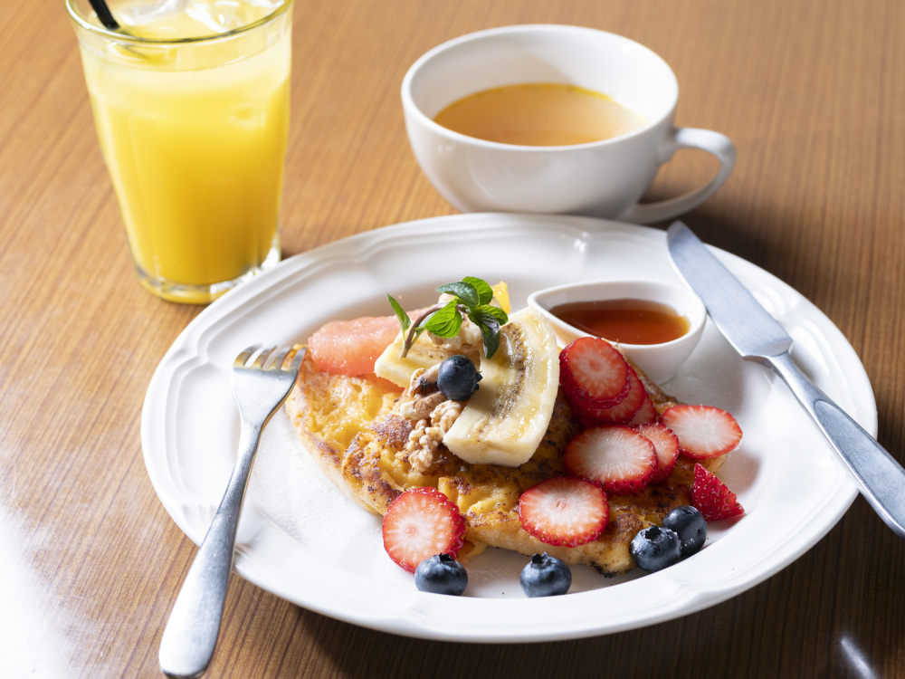 2024年11月にリニューアルオープンした話題のカフェレストラン。こだわりの窯焼きピザやパスタのほか、ふわふわのパンケーキ、お酒も楽しめるデイリーダイニングです。贅沢な味わいのパンケーキは、季節に合わせて4種類以上を用意、心ほどけるスイーツタイムが過ごせます。広々とスタイリッシュで暖かみのある店内にはキッズスペースもあり、家族連れも楽しめます。