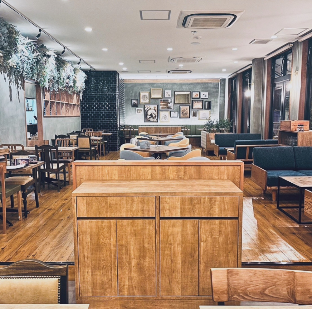 街の中心部にある「フダンをモダンに」がコンセプトのカフェ。木の温もりが優しく、自然光がたっぷりと入る開放感のある造り。モーニングからカフェタイム、ランチ、ディナーまで様々なシーンで楽しめます。パティシエ手作りのスイーツは定番から季節限定ケーキまでオリジナリティに溢れた多彩なラインナップ。ワンプレートになったフードメニューも人気です。