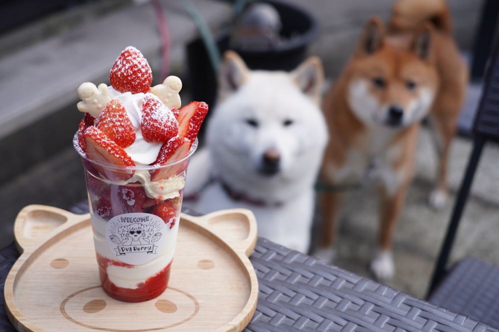 ・新鮮ないちごを使用した「いちご山パフェ」はシンプルな味わい。テラス席がペット可なのも嬉しい。(40代・男性)