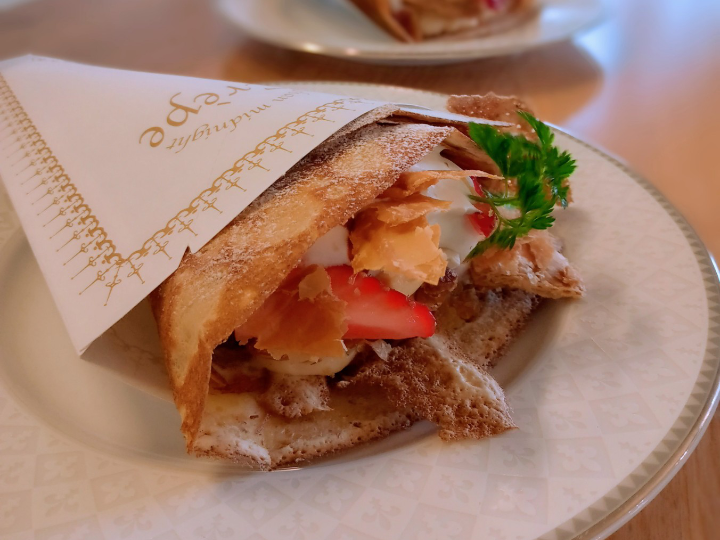 生地の美味しさにこだわったクレープ店。パリっと香ばしいクレープ生地は、国産小麦粉(群馬産)100%に、地元の新鮮な卵、牛乳や発酵バター、フランス産天然塩を独自配合でブレンド。季節のフルーツやプレミアムな生クリームを使ったデザート系からお食事系まで、季節ごとのメニューが豊富です。その他ガレットや焼き菓子なども販売、イートインスペースも利用できます。