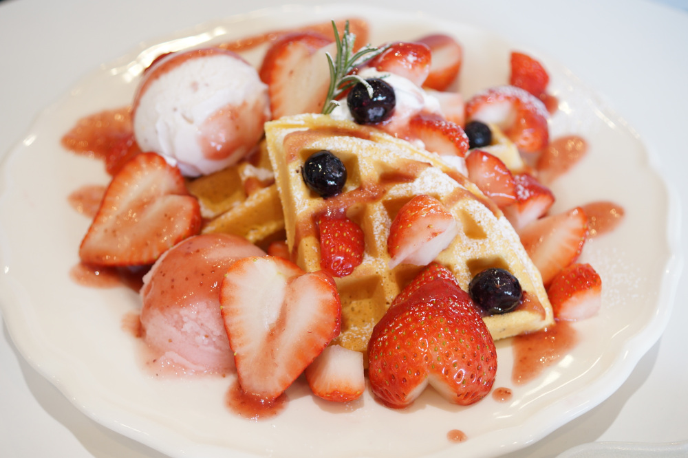 ・ワッフル、ソフトクリーム、シェイクなどいちごメニューがたくさん♪珍しい白いいちごを使った「ミルキーベリースペシャルスムージー」はまろやかな甘さで美味しかったです。(20代・女性)
