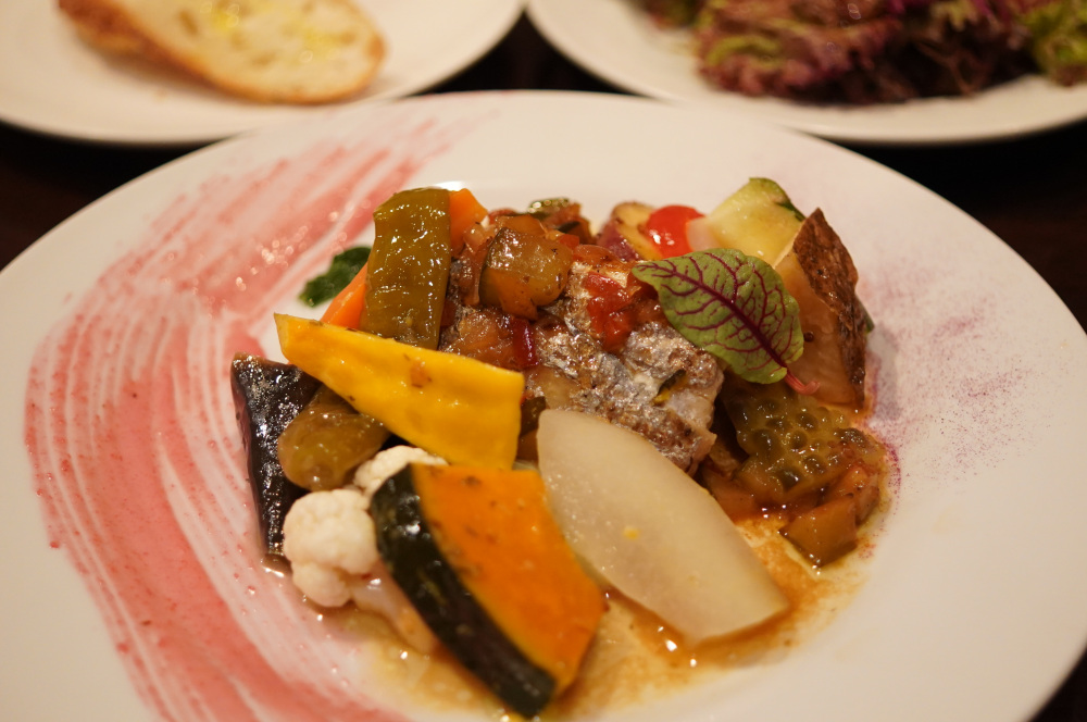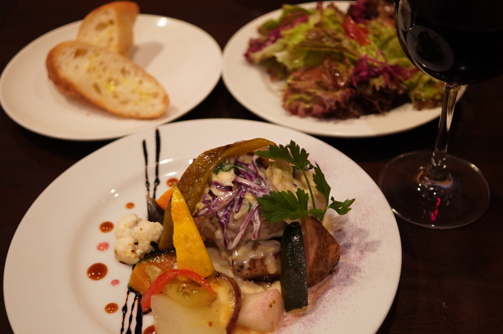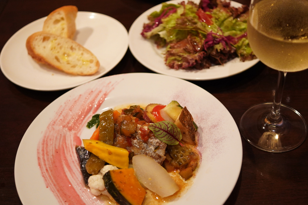 「ヒルトンホテル」でサービスを、「ル・コルドン・ブルー」でフレンチを学んだオーナーが切り盛りするワインビストロ。ランチはお魚とお肉、たっぷりお野菜の3種類のコースから選べます。仕上げにラズベリービネガーをスプレーするサラダ、メインのソースから付け合わせの野菜まで、見た目もボリュームも大満足。お腹いっぱいでもペロリと食べられる濃厚なデザートも絶品。丁寧に提供される一皿を味わいながら、優雅なランチタイムを過ごして。