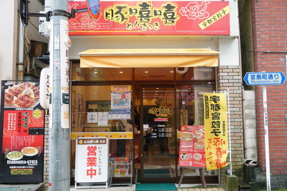 豚嘻嘻本店は、餃子通り入ってすぐ(宇都宮表参道スクエア側)に位置する人気店です。ジューシーな豚肉の旨味が詰まった餃子が特徴で、焼き餃子はもちろん、とってもヘルシーな変わり種餃子「豚バラレタス巻餃子」もおすすめです。かき氷「サクレ」を製造する「フタバ食品」が運営する餃子店なので、店内ではフタバ食品のアイス各種も楽しめます。
