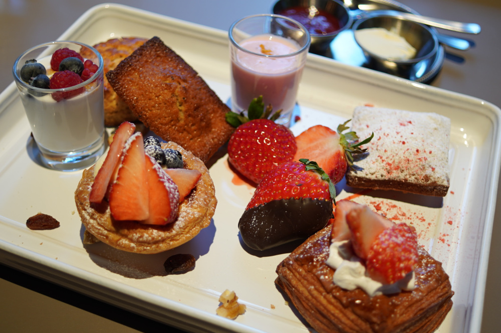 焼きたての全粒粉スコーンやフィナンシェ、1月24日からは栃木県産とちおとめを使ったストロベリースイーツの盛り合わせとなっています。