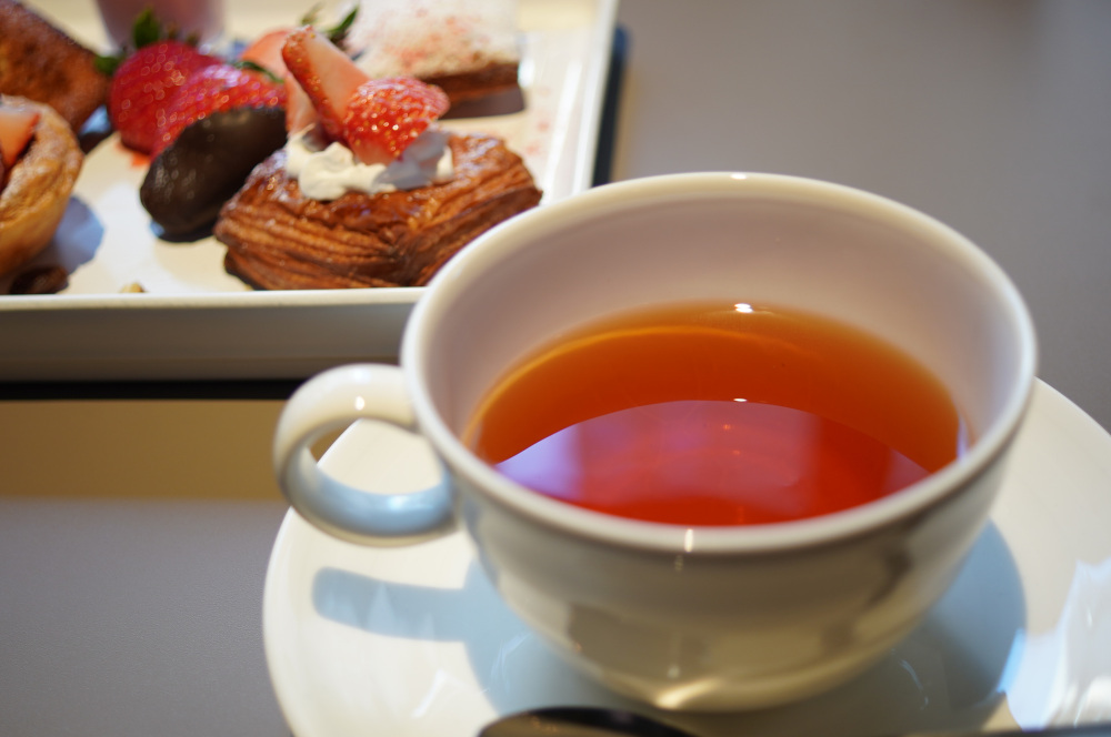 ポットで提供されるオリジナルブレンドティー「苺香(まいか)」は、ホテルの伝統と栃木らしさ、おもてなしの心や安らぎ・癒しなどのコンセプトを表現するなどこだわりがあります。ウェルカムドリンクとして、季節のモクテル(ノンアルコールカクテル)が付くこともあります。フリードリンク(ドリンクバー)が付いており、コーヒー、カフェラテ、エスプレッソ、ハーブティー、ウーロン茶、ジュースなど、種類豊富に楽しめます。