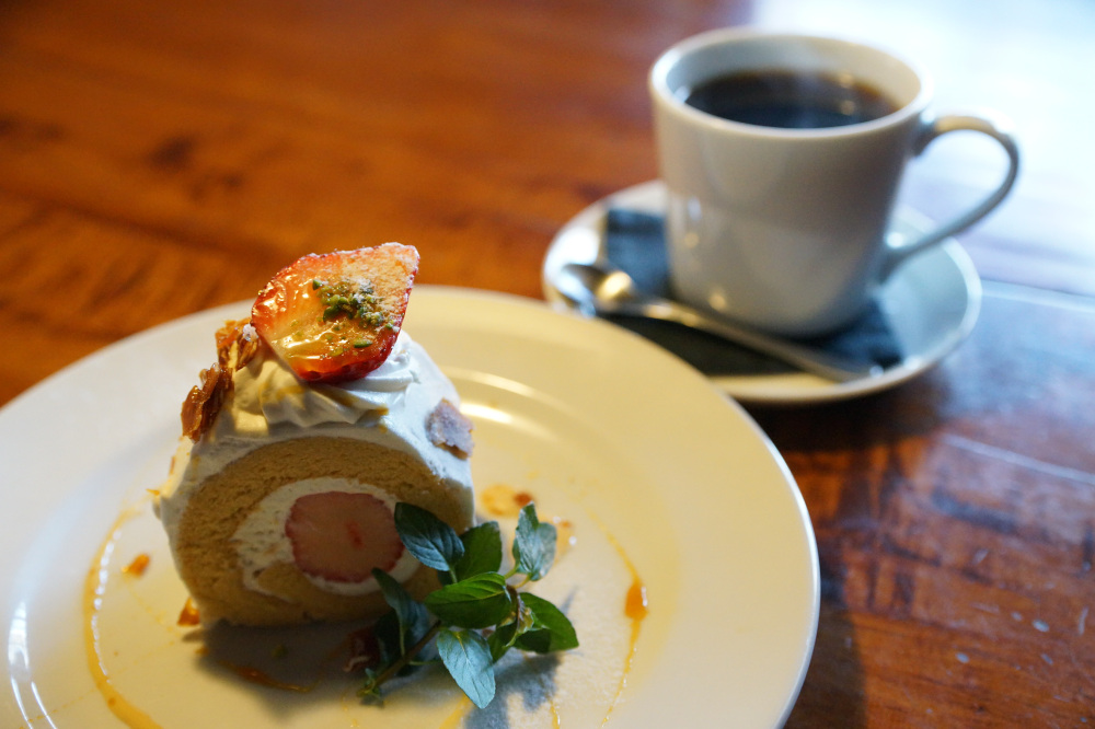 JR宇都宮駅のひとつ隣、岡本駅前にある自家焙煎コーヒー店。ハンドドリップで丁寧に淹れたこだわりのコーヒーと旬の食材を使ったスイーツが味わえます。店内は白を基調にビンテージ家具が配され、大きな窓から柔らかな光が差し込みます。「誰かの何気ない日常に、ほんの少しだけ“甘い時間、甘い瞬間”を作りたい」とのオーナー夫妻の思いが溢れる優しい空間です。