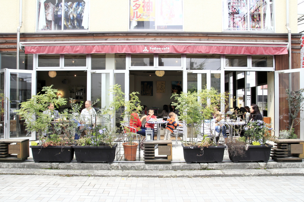 静かな住宅街に佇むカフェは、木の温もりが優しく、自然光がたっぷりと入る開放感のある造り。「フダンをモダンに」をコンセプトに、モーニングからカフェタイム、ランチ、ディナーまで様々なシーンで楽しめます。オリジナルブレンドの淹れたてコーヒーは、時間帯によって濃さを調整するこだわりぶり。パティシエ手作りのスイーツ、ワンプレートの食事もバリエーション豊かです。