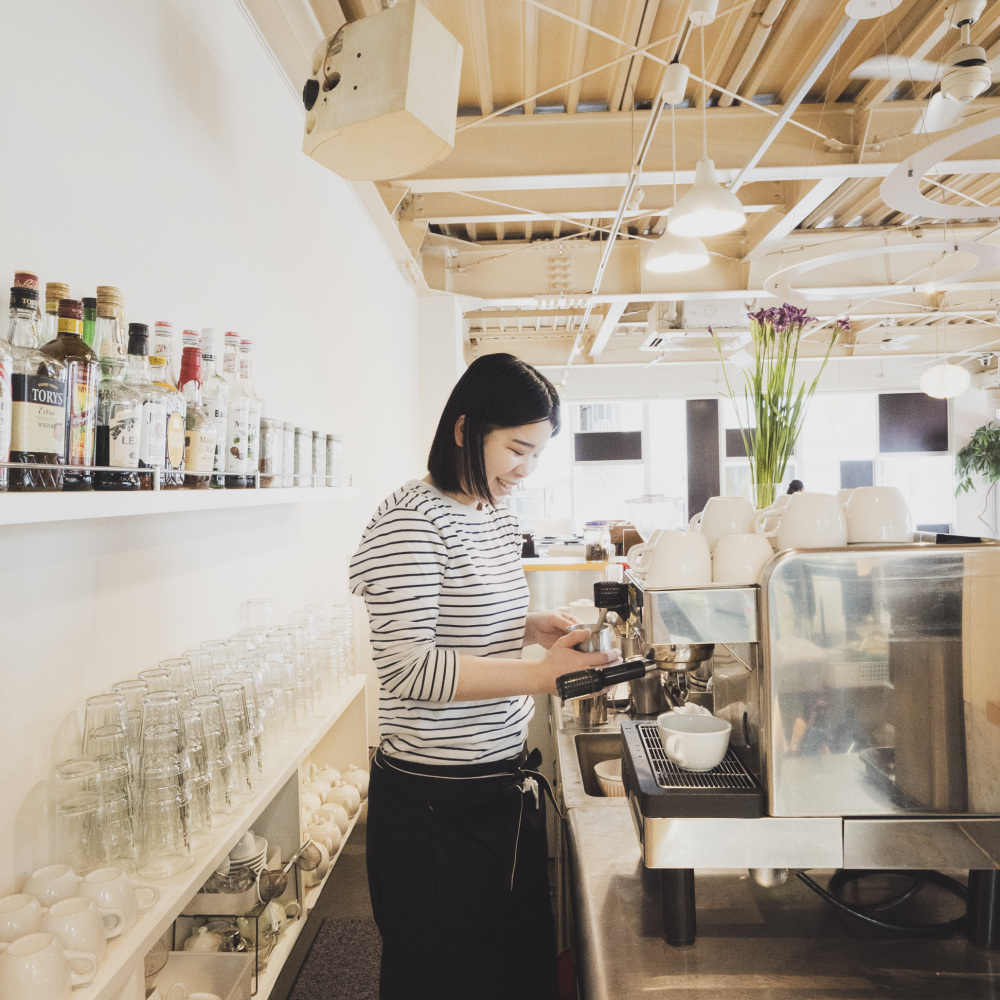 お洒落なインテリア、オープンテラスのあるゆったりした空間。テーブル席のほかカウンター席もあり、居心地のよい雰囲気です。こだわりのコーヒーは濃厚なエスプレッソからミルクフォームで描いたアートが楽しいカフェラテまで、充実のメニューから選べます。マフィンやパンケーキなどのモーニングから、野菜たっぷりのライスボール、ジャージャー麺などのランチまで、お料理も本格的です。