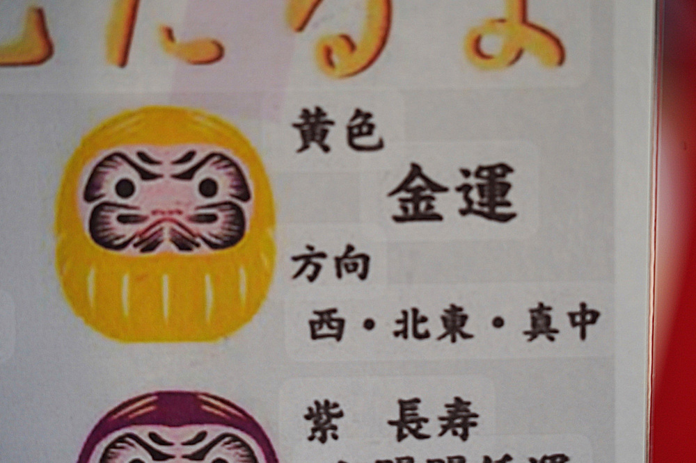 お店によって異なる場合がありますが、黄色のだるまは「金運」ですって!ご利益ありますように!!
