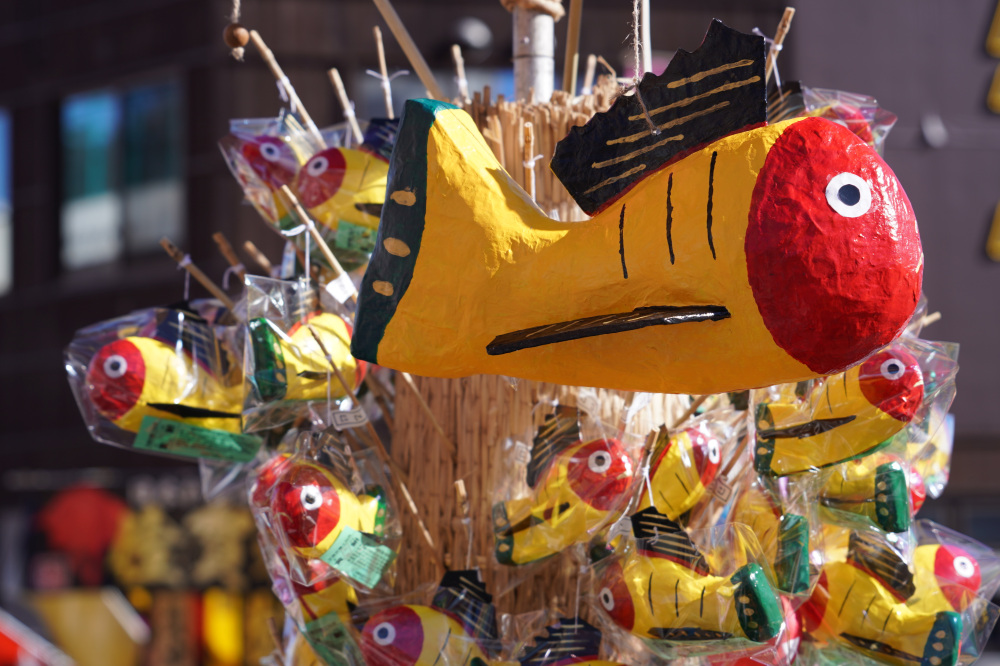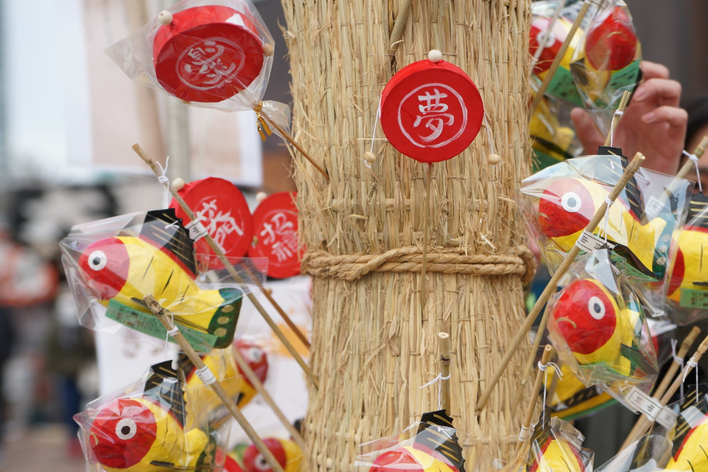 「だるま」、「黄ぶな」、「熊手」は、まさに縁起物の“三種の神器”!毎年多くのお店が出店しています。