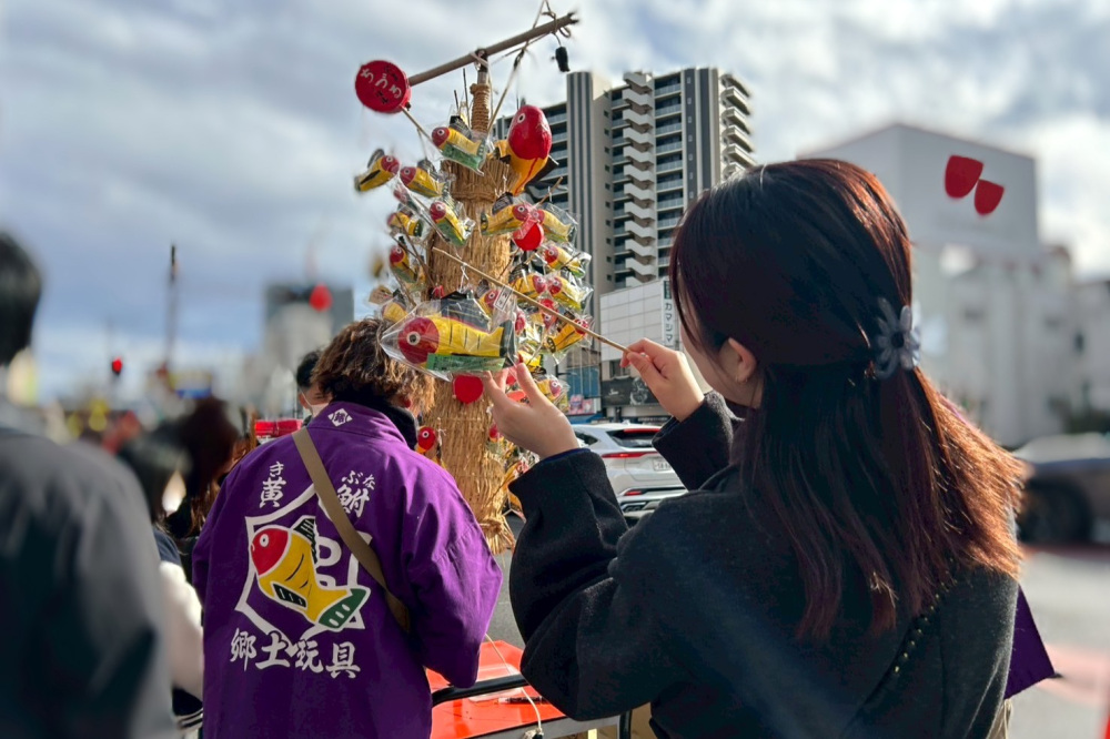 - 縁起物を売る屋台の人の威勢の良い掛け声を聞いていると、こちらまで背筋が伸びる思いがします。冷たい風の中、大好きな「からあげ」を頬張りながら、東京から新幹線ですぐの距離に、こんなにも力強く伝統が息づく場所があるのだと、改めて宇都宮の魅力を発見しました。