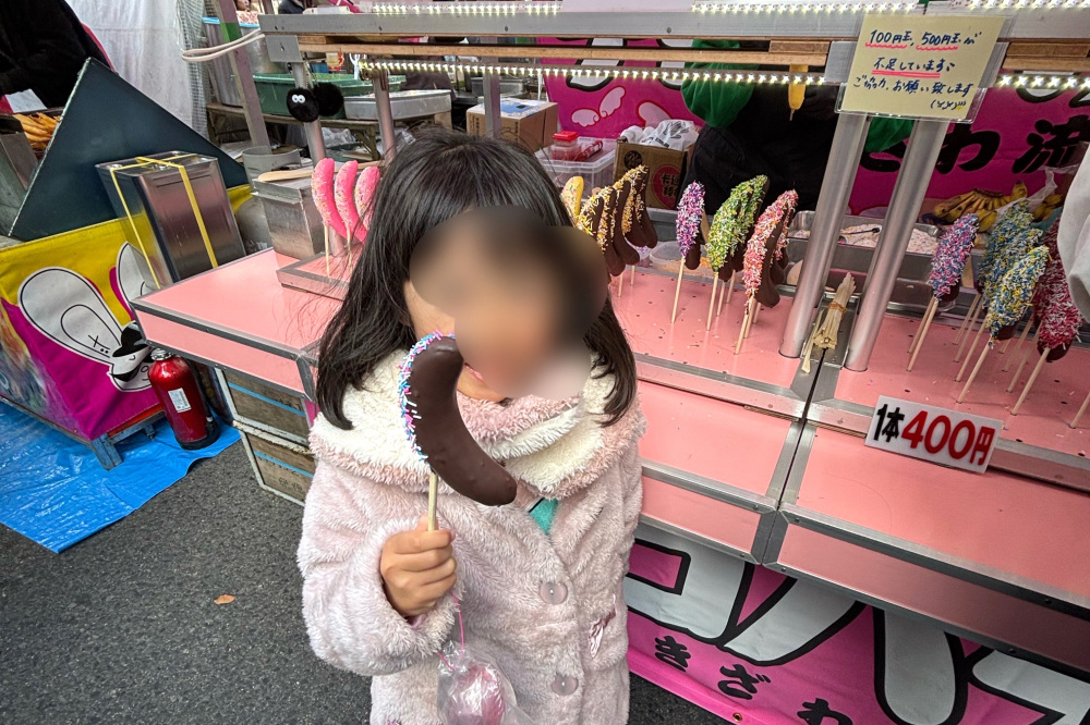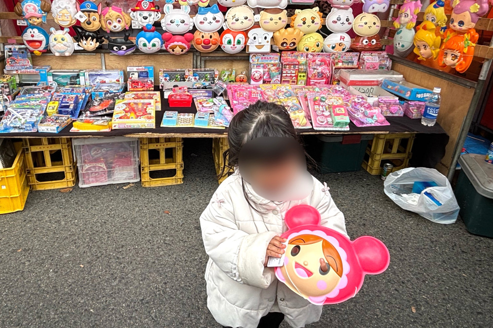宇都宮市民ライターえりなさん(の娘さん達)が選んだのはキャラクターの「お面」。小さいお子さんがいる家庭では、「わたあめ」と並ぶ人気商品ですよね。