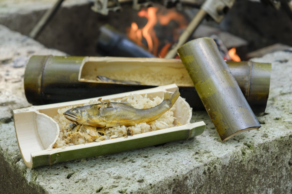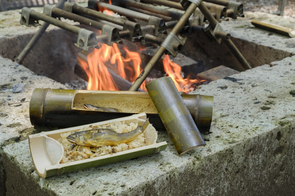 ■ 竹の飯ごうで鮎飯づくり (7月20日(日)10:00~)