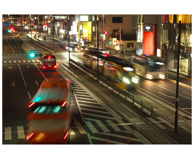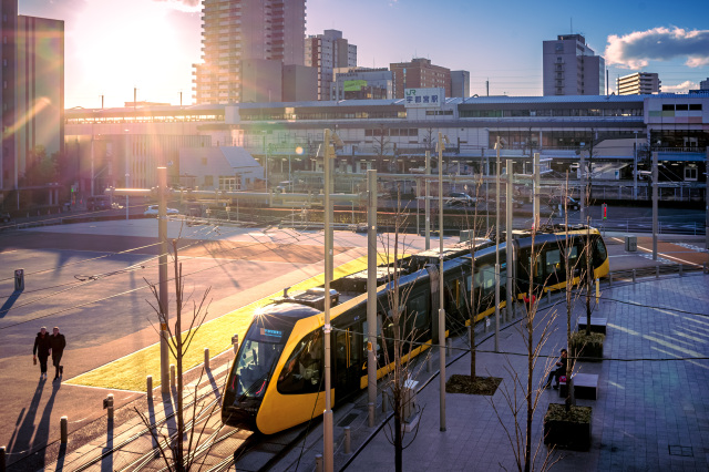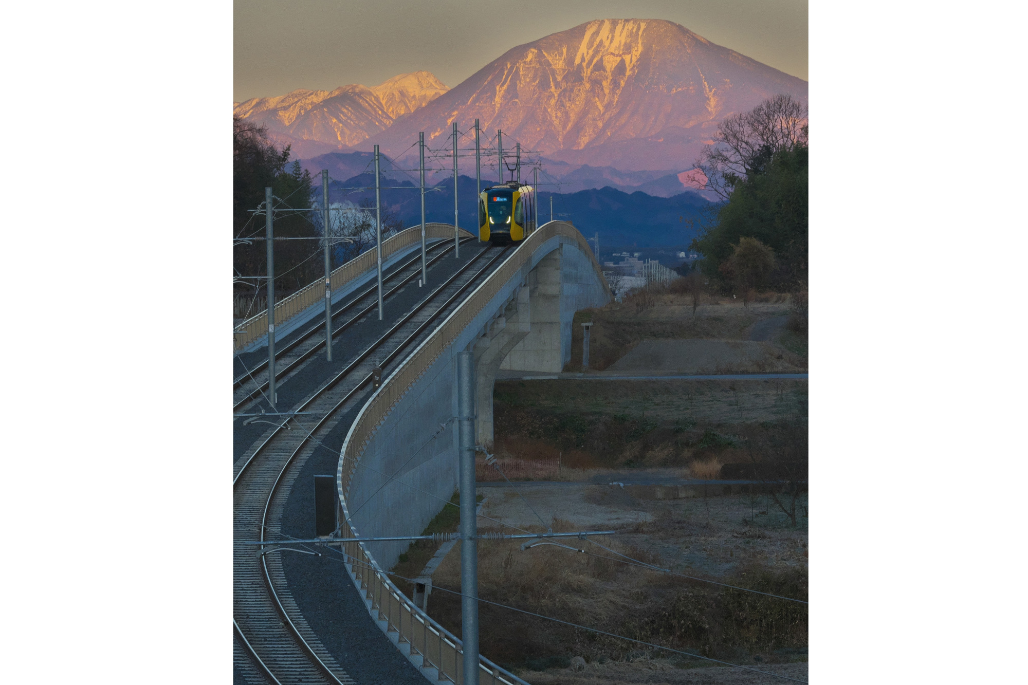 芳賀・宇都宮LRT「ライトライン」は、開業以来、注目を集めており、すっかり市民の足となっている。そのLRTに西日が差し、背景に駅西側の街が見えており、LRTの未来への期待が感じられる作品。