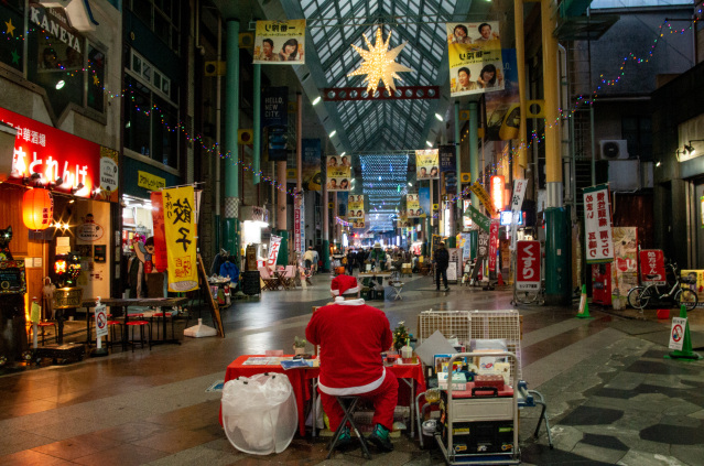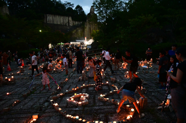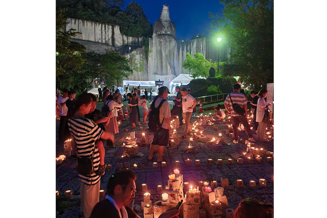 賑わいの戻ってきた大谷を切り取った写真。キャンドルの明りに負けず、大谷石の石畳のテクスチャーが表現されている。遠く平和観音も望めて、奥行も感じられる。