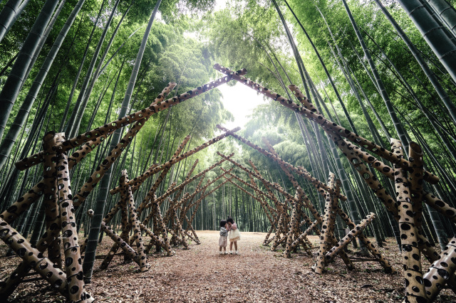 若山農場の美竹林は、宇都宮市の代表的な魅力のひとつ。竹の造形物の中には、可愛らしい童男と童女がおり、作品全体を和やかにするとともに、竹林の魅力を更に高めている。