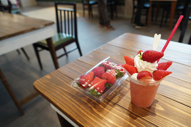 いちご狩りを楽しんだ後は店内のカフェスペースでジェラート、スムージー等を堪能でき、さらにいちごの直売やオリジナル加工品も販売していますので、この地域ならではのいちごをめいっぱいを楽しむことができます。