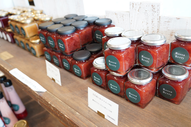 各品種いちごのパック販売はもちろん、ジャムなどの加工品も数多く販売されています。旅のお土産にもオススメです。