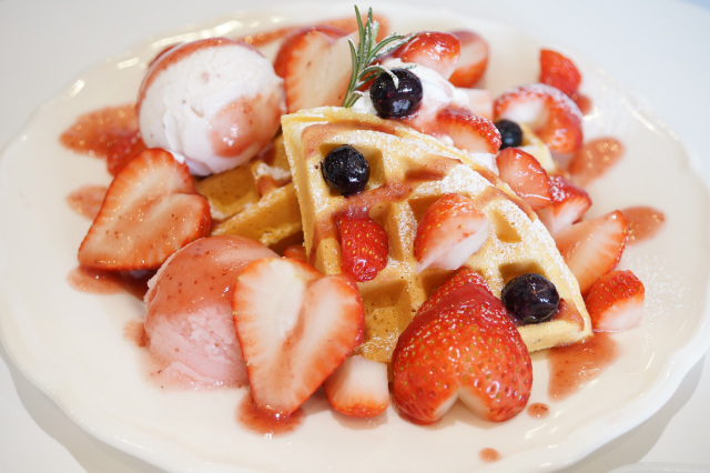 いちご狩りを楽しんだ後は店内のカフェスペースでスイーツをお楽しみ下さい。とちおとめ or とちあいか or スカイベリー・・・各品種ご用意ありますので、迷ってしまいますね。